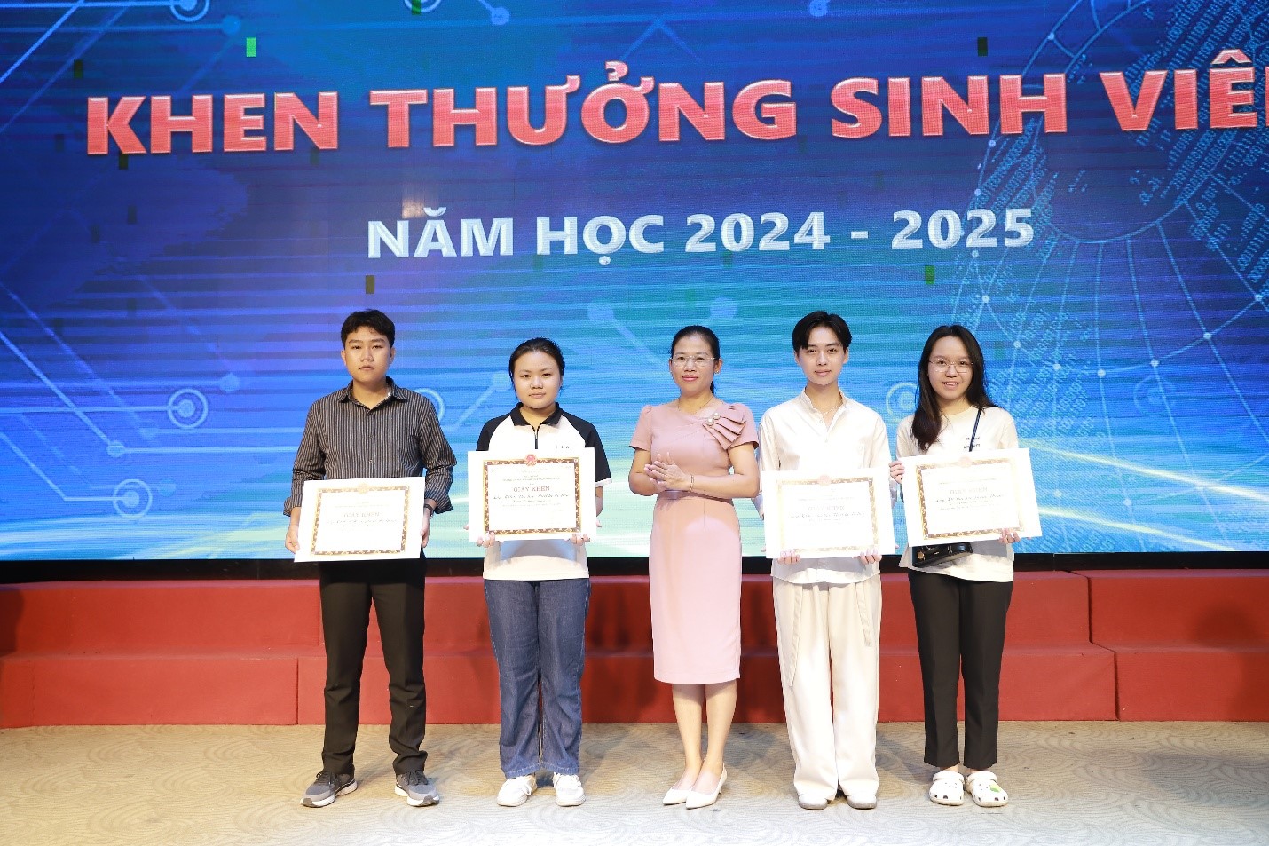 Đại diện lãnh đạo các đơn vị trao giấy khen cho tập thể, sinh viên có thành tích cao trong học tập