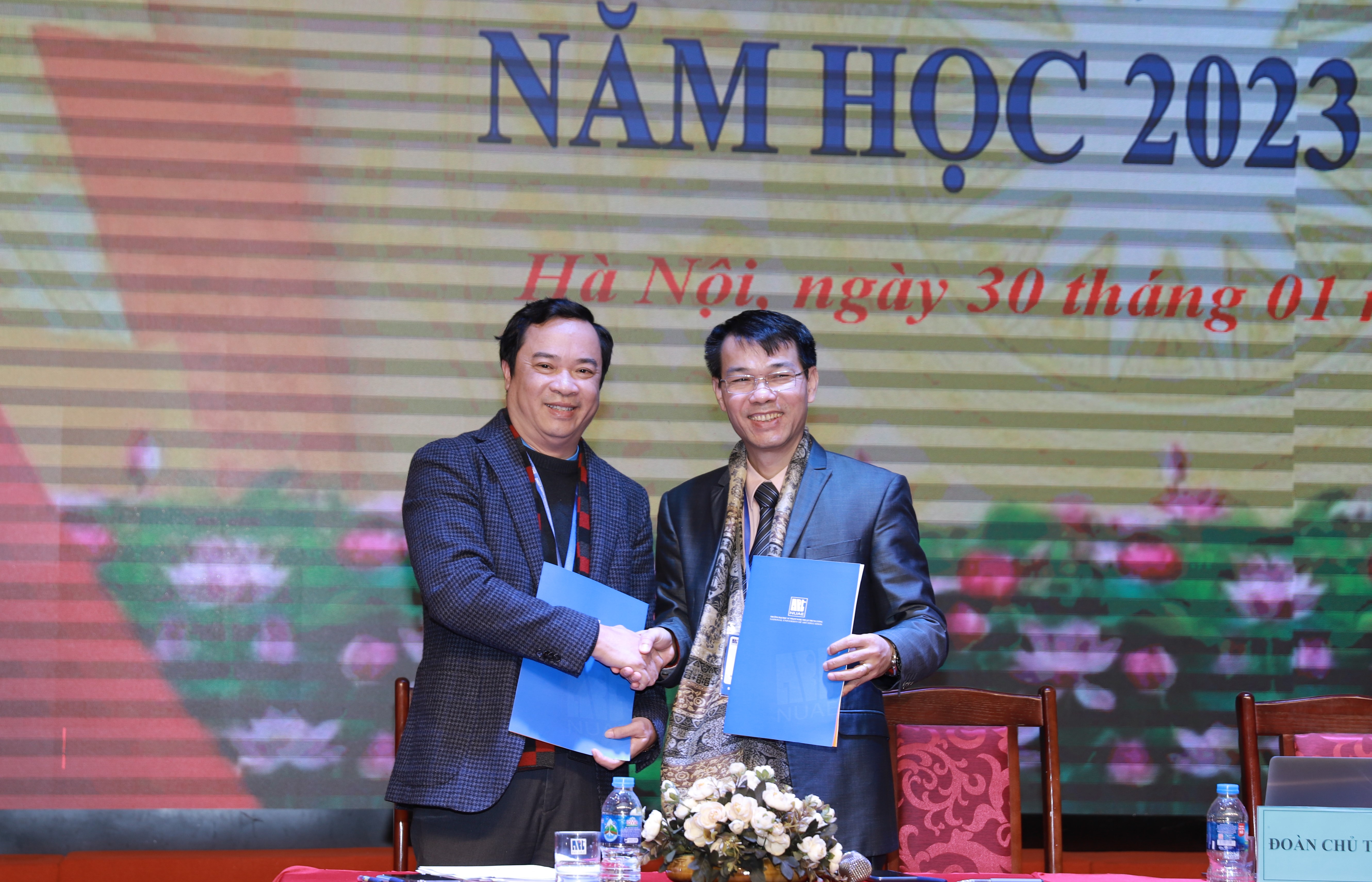 Đại diện Ban Giám hiệu và đại diện Ban chấp hành Công đoàn Trường ký Giao ước thi đua năm học 2023-2024 trước sự chứng kiến của toàn thể Hội nghị
