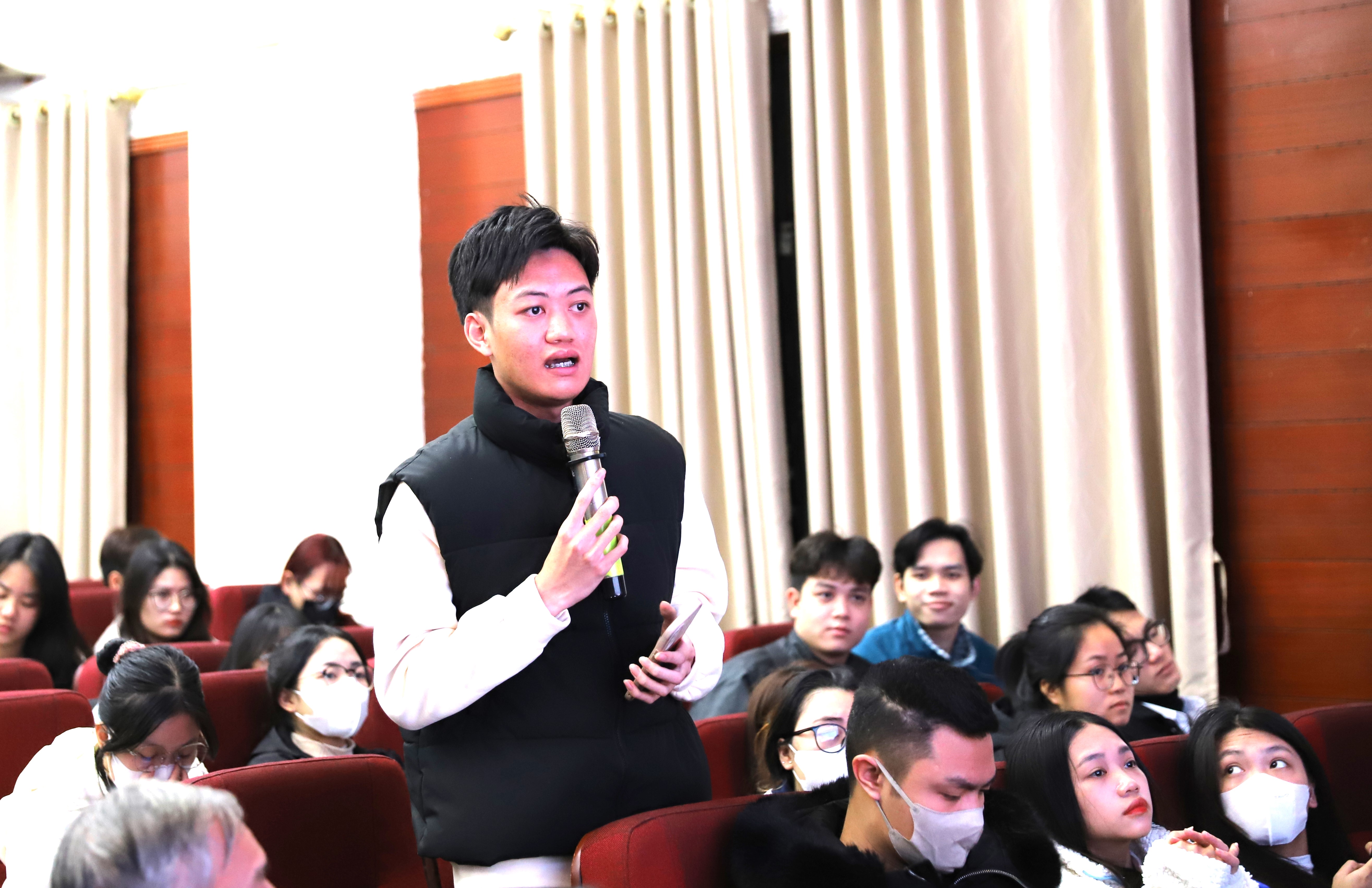 Sinh viên chia sẻ những băn khoăn, thắc mắc với lãnh đạo Nhà trường