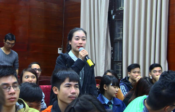 Sinh viên K9A – Sư phạm Mỹ thuật đặt câu hỏi tại Hội nghị