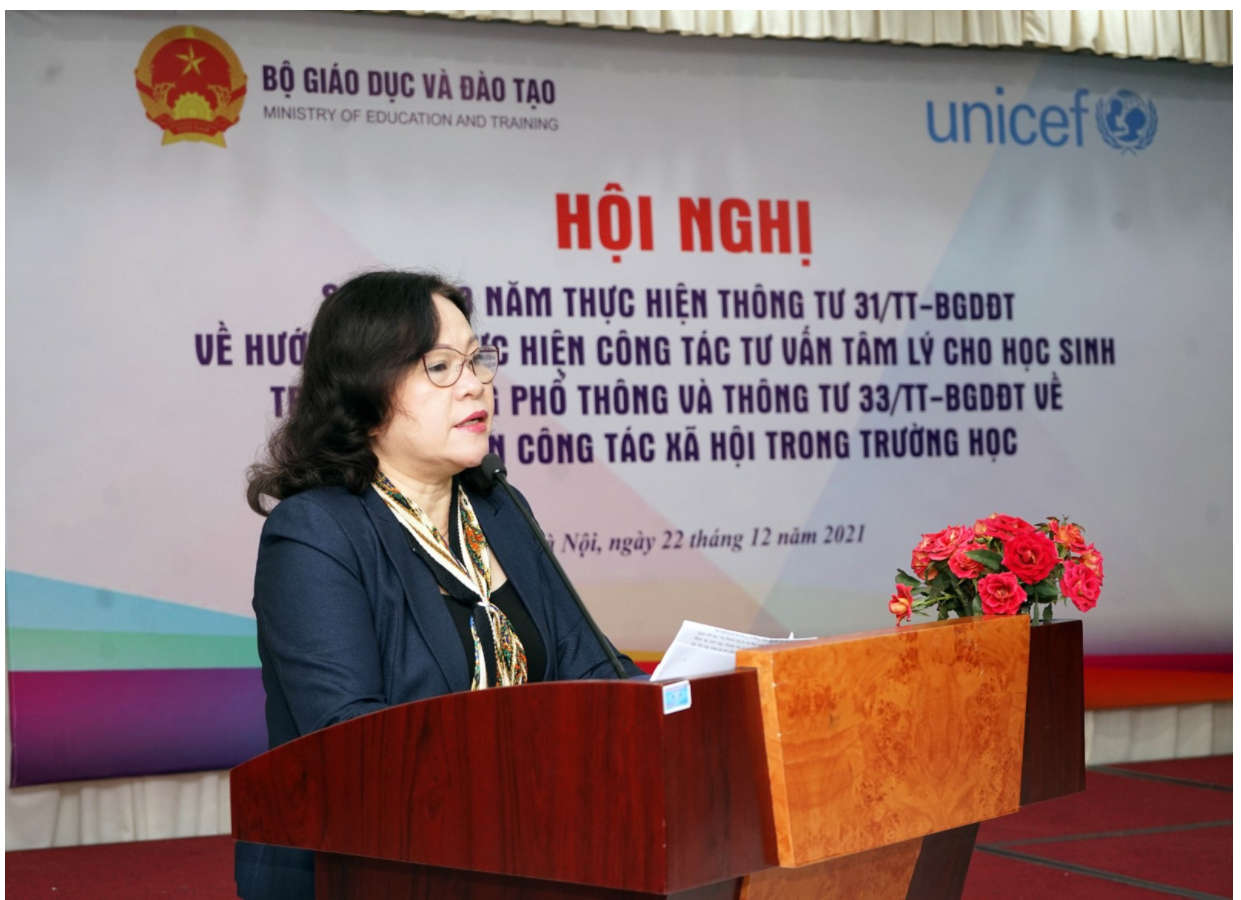 Sáng ngày 22.12, Thứ trưởng Bộ Giáo dục và Đào tạo (GDĐT) Ngô Thị Minh chủ trì “Hội nghị sơ kết 3 năm thực hiện thông tư 31/2017 BGDĐT và hướng dẫn thực hiện công tác tư vấn tâm lý cho học sinh trong trường phổ thông và thông tư 33/2018 TT-BGDĐT về hướng dẫn công tác xã hội trong trường học”. Hội nghị được tổ chức theo hình thức trực tiếp kết hợp với trực tuyến, có sự tham gia của các chuyên gia, nhà quản lý giáo dục và các Sở GDĐT trong cả nước.