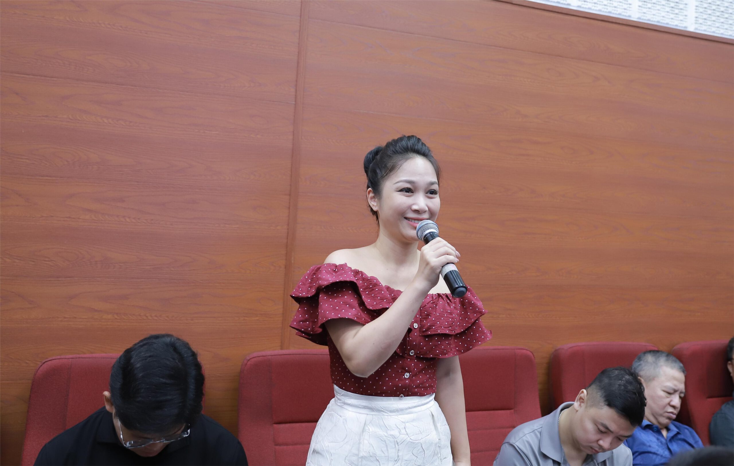 Bà Vi Thanh Hoài – Phó Cục trưởng Cục Văn hóa Cơ sở, Gia đình và Thư viện, Bộ Văn hóa Thể thao và Du lịch phát biểu tại Hội nghị