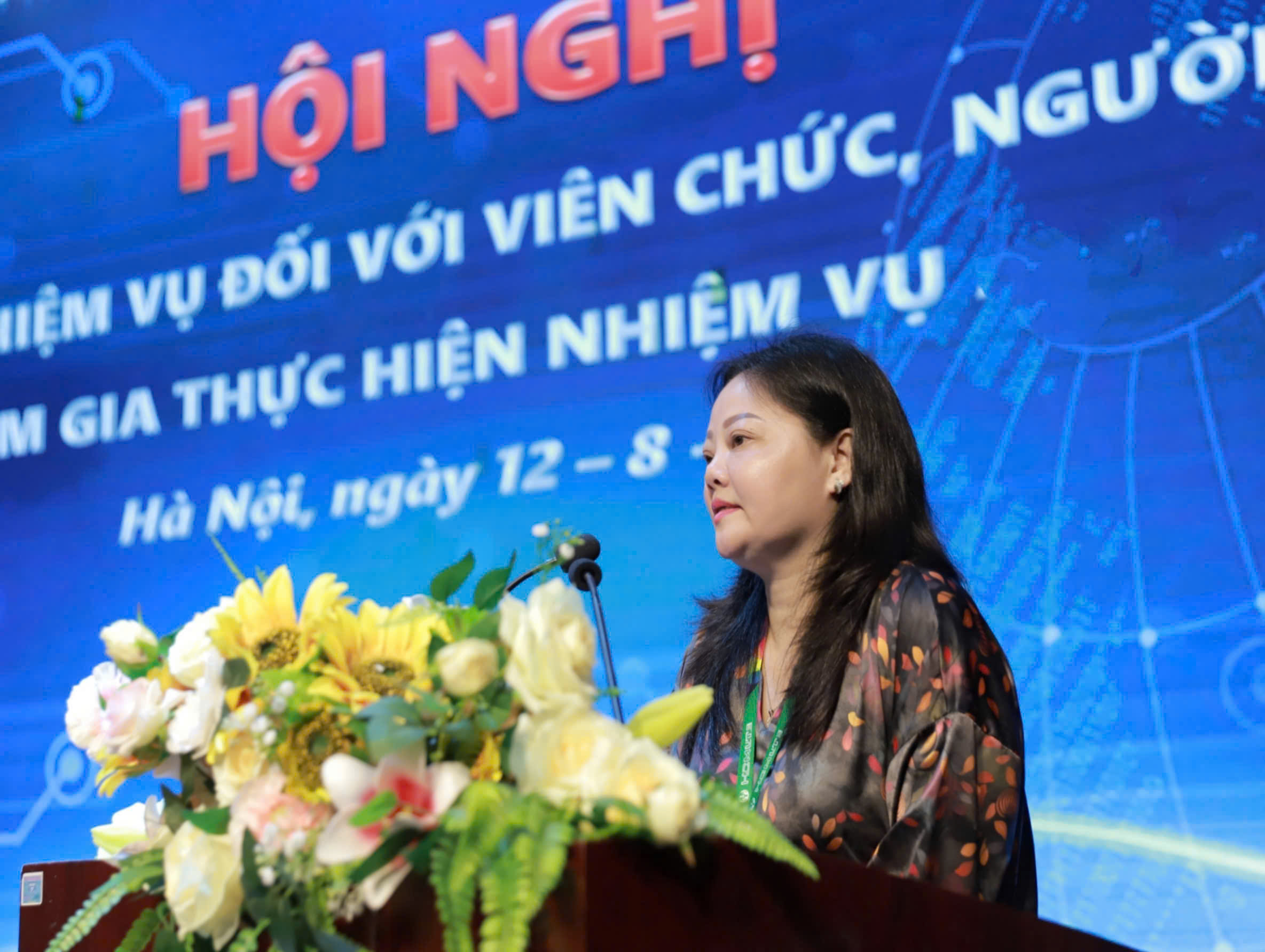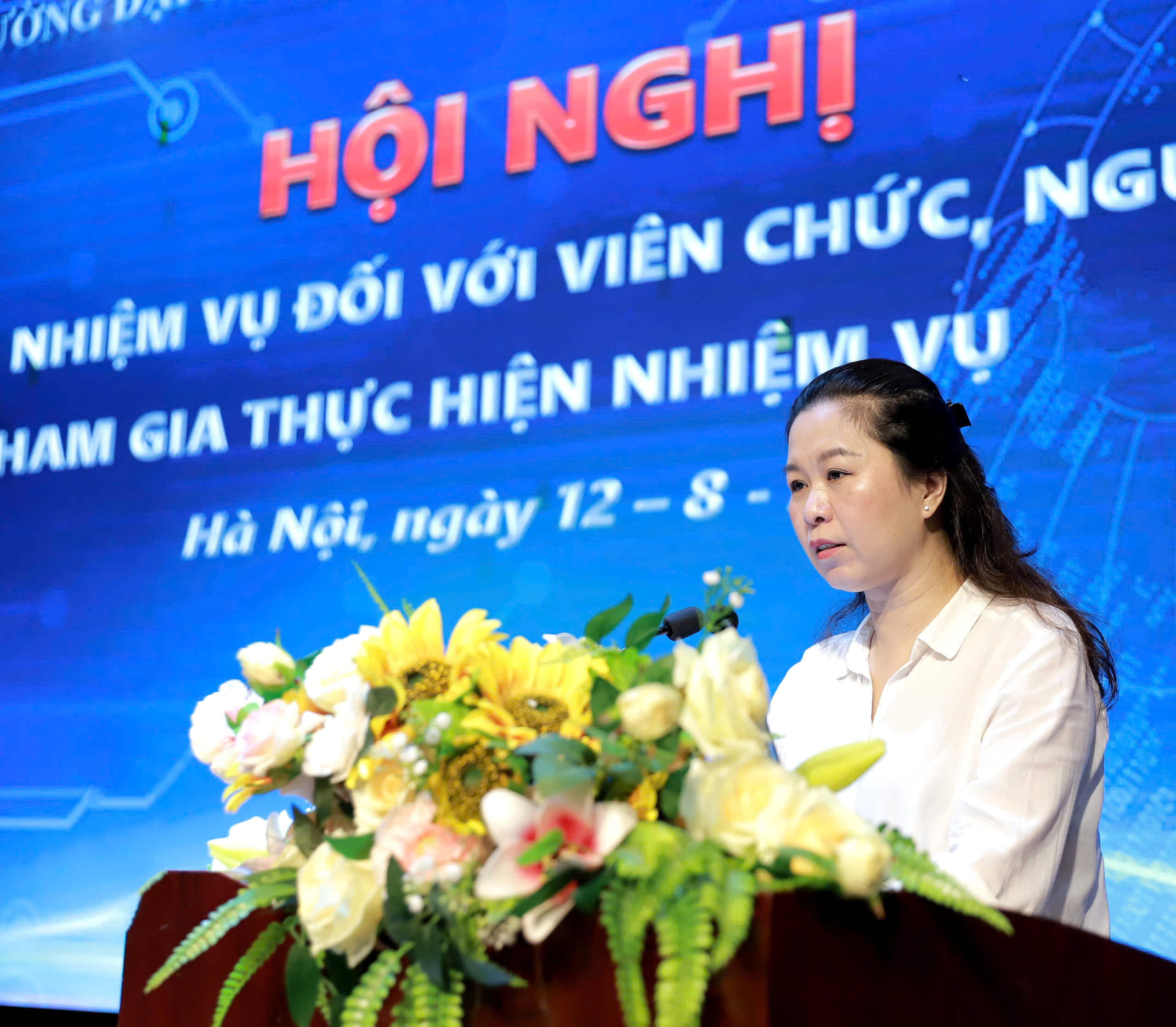Bà Trịnh Thị Thanh – Phó Bí thư Đảng ủy, Phó Hiệu trưởng phát biểu giao nhiệm vụ tại hội nghị
