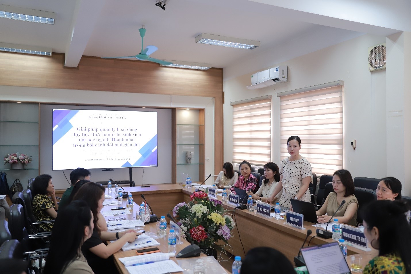 Sau khi nghe các tham luận, các ý kiến tập trung trao đổi, thảo luận về các giải pháp nhằm nâng cao chất lượng đào tạo, phát triển năng lực chuyên môn, kỹ năng biểu diễn và khả năng sáng tạo cho sinh viên, đồng thời gắn kết lý luận với thực tiễn biểu diễn và nghề nghiệp. Hội thảo tạo cơ hội đánh giá các giải pháp, đồng thời xác định hướng tiếp tục hoàn thiện chương trình và phương pháp đào tạo trong bối cảnh đổi mới giáo dục.
