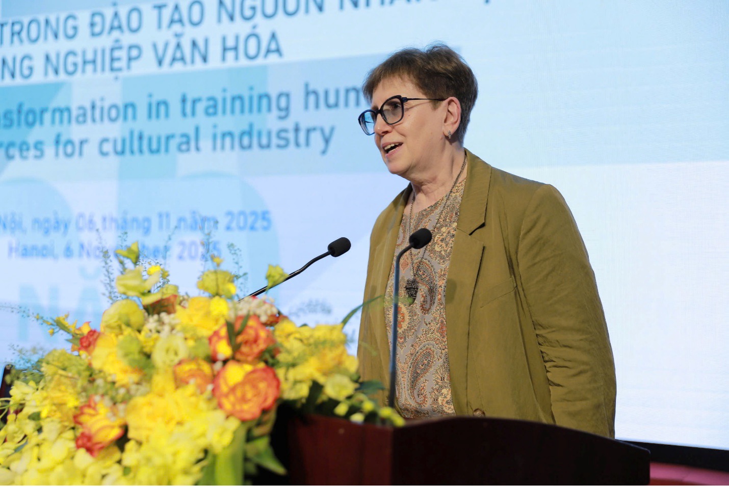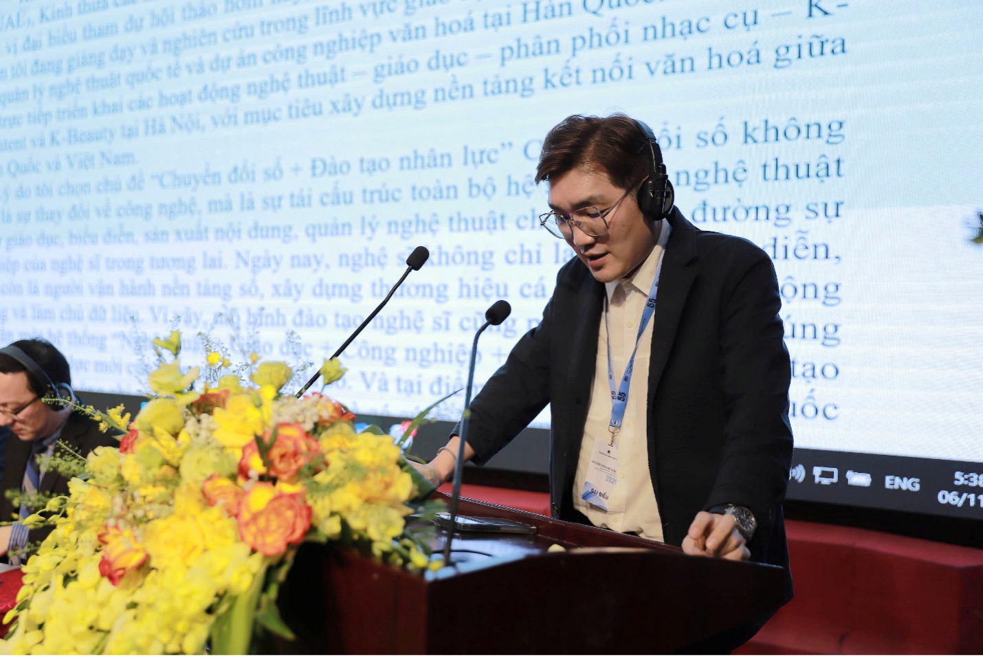 Trong không khí sôi nổi của Hội thảo Khoa học Quốc tế, phiên thảo luận đã trở thành diễn đàn sinh động, nơi các đại biểu Việt Nam và quốc tế cùng chia sẻ quan điểm về chuyển đổi số, đào tạo nhân lực văn hóa – nghệ thuật và bảo tồn di sản trong kỷ nguyên công nghệ. Tại đây, các ý tưởng giao thoa giữa truyền thống và đổi mới đã tạo nên những cuộc trao đổi sâu sắc, mở ra nhiều hướng tiếp cận mới cho lĩnh vực nghệ thuật và di sản.