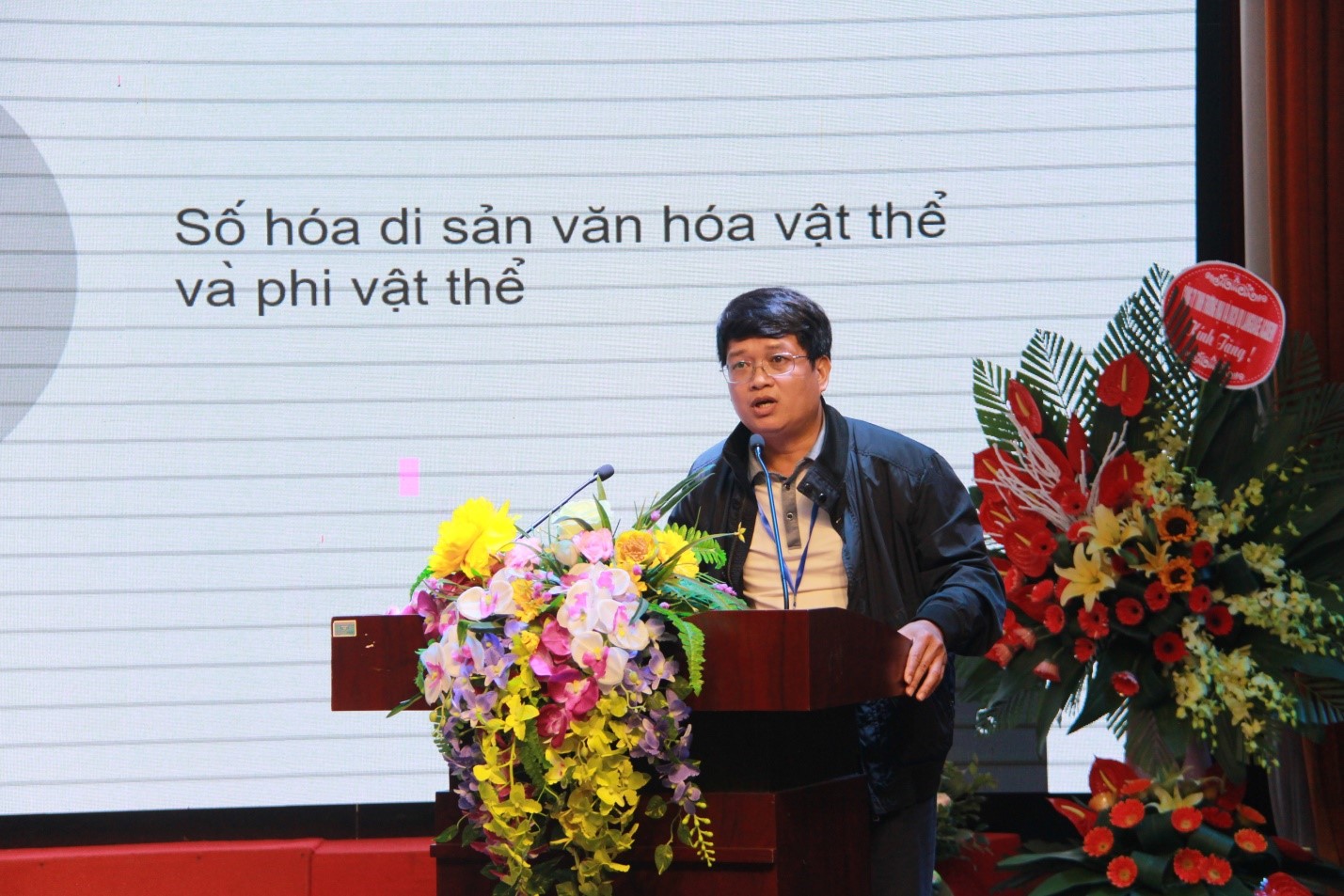 TS. Nguyễn Đình Lâm (Đại học Quốc gia Hà Nội) trình bày tham luận Số hóa di sản nghệ thuật biểu diễn truyền thống Việt Nam – hướng tiếp cận và ứng dụng