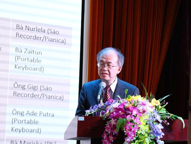 Tham gia Hội thảo có PGS.TS Trịnh Hoài Thu – Phó Vụ trưởng Vụ Giáo dục Tiểu học, Bộ Giáo dục và Đào tạo; ông Makoto Tani – Tổng Giám đốc công ty Âm nhạc Yamaha Việt Nam; GS. Masafumi Ogawa – Trường Đại học Tổng hợp Yokohama, Nhật Bản, chuyên gia tư vấn của Bộ Giáo dục và Đào tạo, Việt Nam; Giảng viên Yuki Shimada – Trường âm nhạc Yamaha.