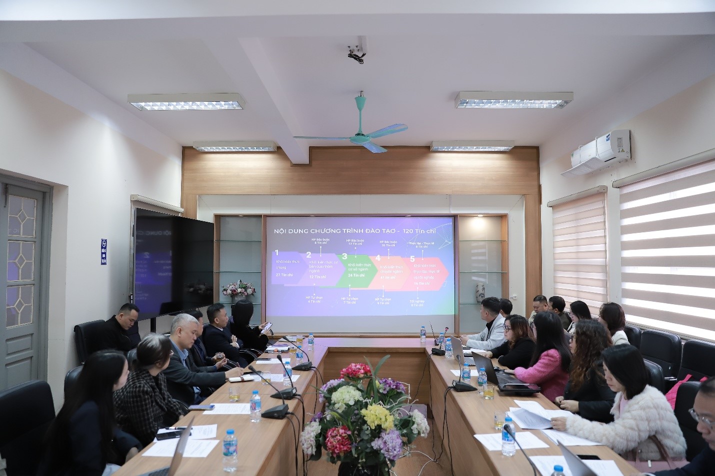 PGS.TS. Đào Đăng Phượng – Bí thư Đảng ủy Trường ĐHSP Nghệ thuật TW trao đổi về công tác tổ chức và triển khai chương trình đào tạo, nhấn mạnh việc sắp xếp chương trình 3 năm với 120 tín chỉ bảo đảm tính khoa học, hợp lý và phù với năng lực học tập của sinh viên