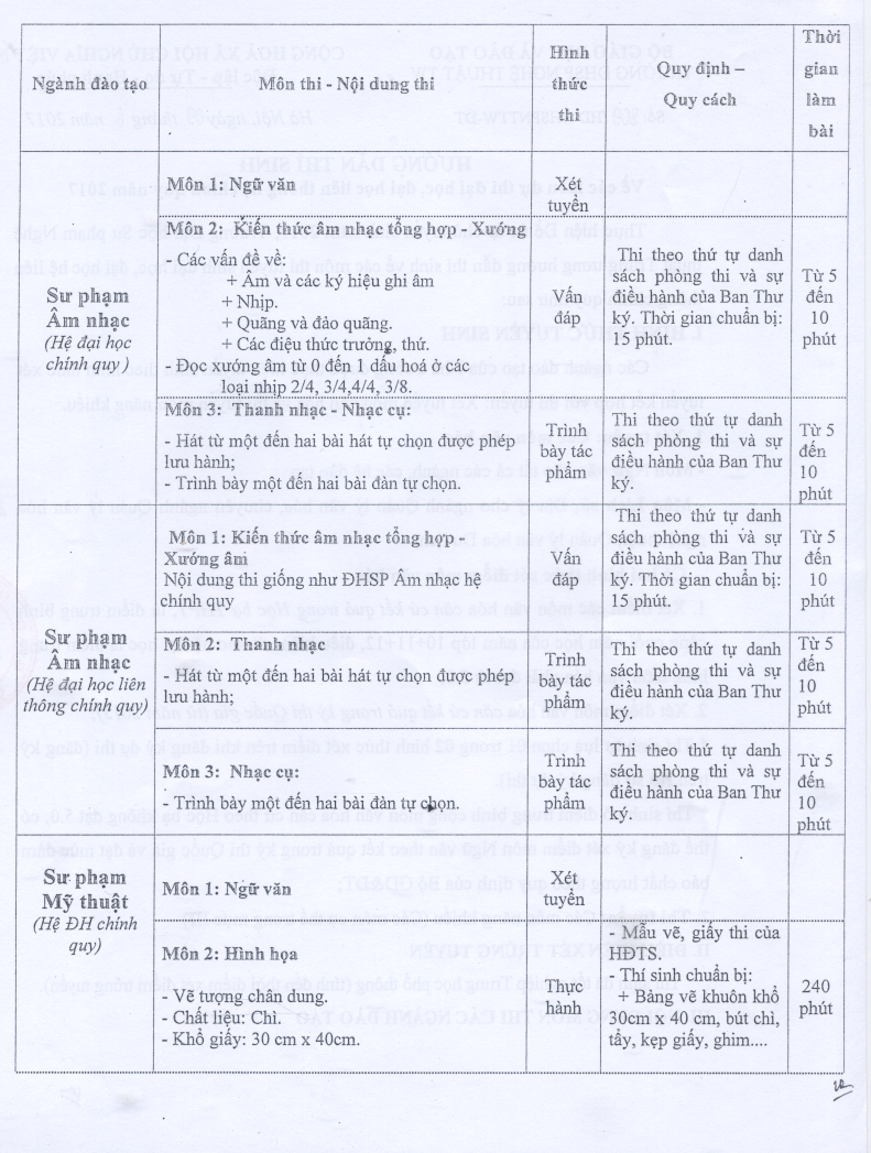 Hướng dẫn thí sinh về các môn dự thi đại học, đại học liên thông hệ chính quy năm 2017
