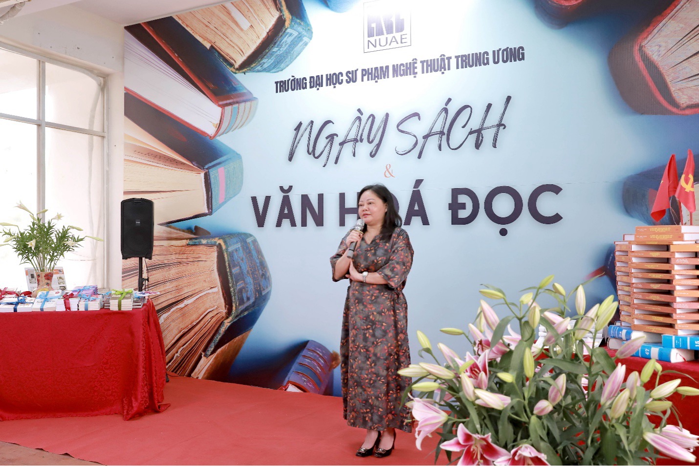 Thay mặt lãnh đạo Nhà trường, đồng chí Trịnh Thị Thanh – Phó Bí thư Đảng ủy, Phó Hiệu trưởng phát biểu nhấn mạnh, sách luôn giữ vị trí đặc biệt khi vừa là người bạn đồng hành, vừa là người thầy dẫn dắt, mở ra tri thức và bồi dưỡng tâm hồn cho mỗi cá nhân.