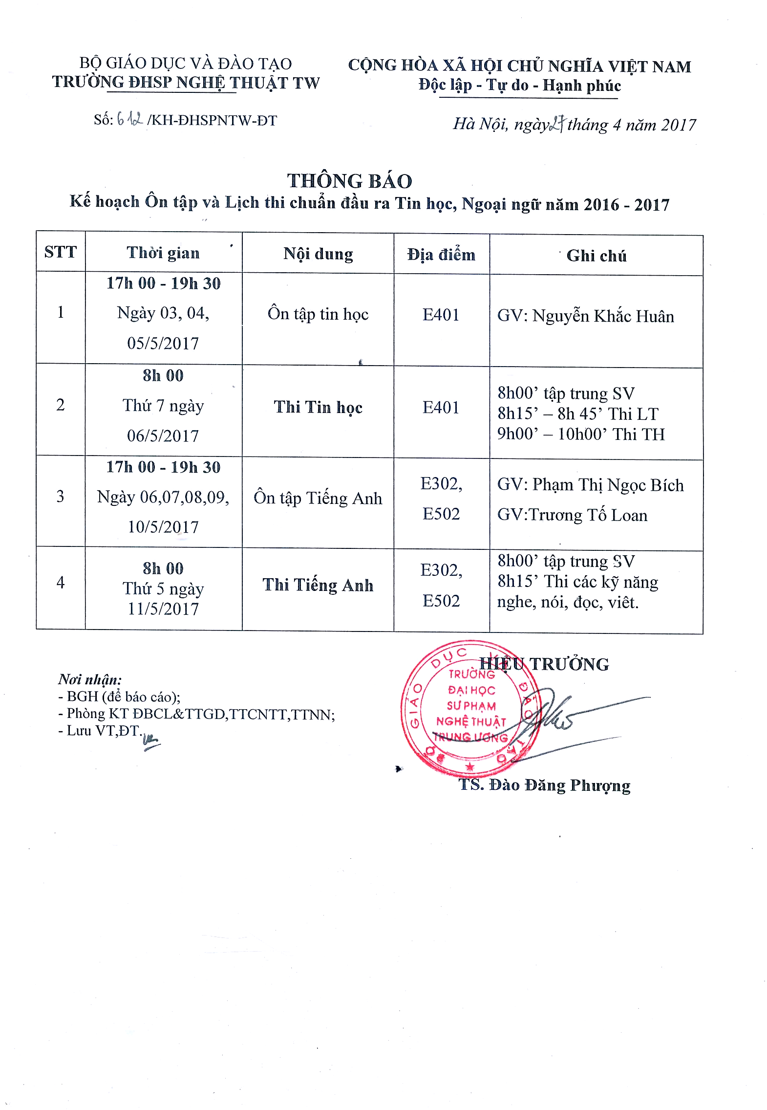Kế hoạch Ôn tập và Lịch thi chuẩn đầu ra Tin học, Ngoại ngữ năm 2016 – 2017 (đăng ký tại phòng Đào tạo)