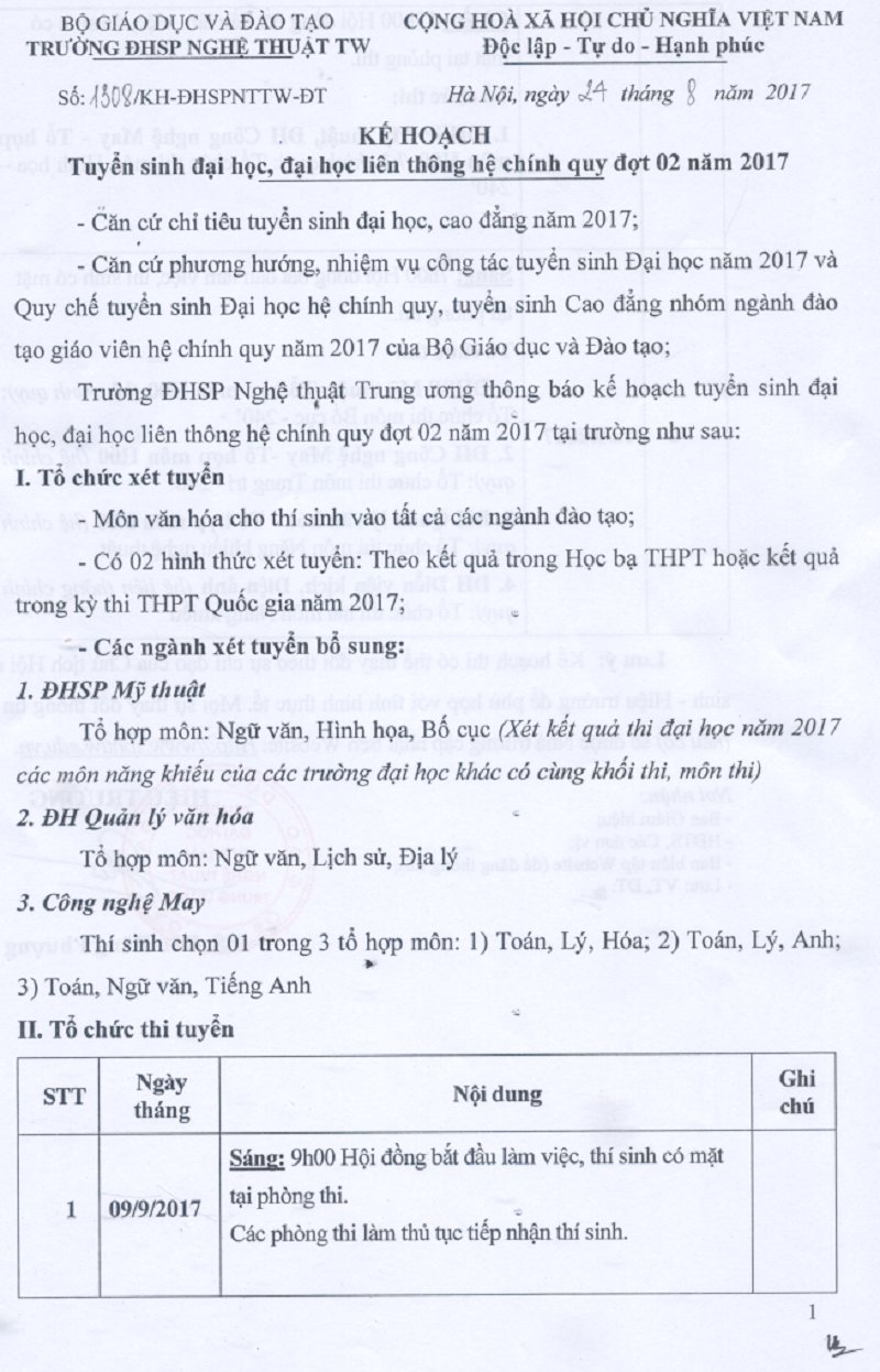 Kế hoạch tuyển sinh đại học , đại học liên thông hệ chính quy đợt 02 năm 2017