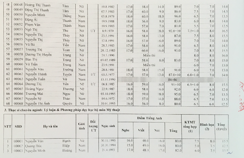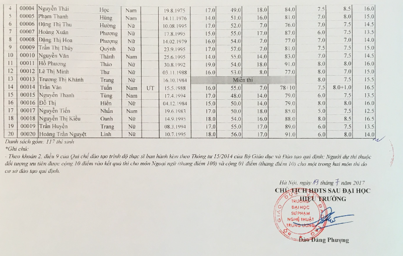 Kết quả kỳ thi tuyển sinh Sau đại học đợt 1 năm 2017
