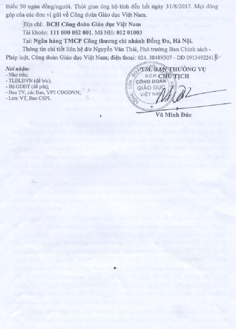 Kêu gọi quyên góp ủng hộ CBNGNLĐ các tỉnh Tây Bắc bị thiệt hại do mưa lũ