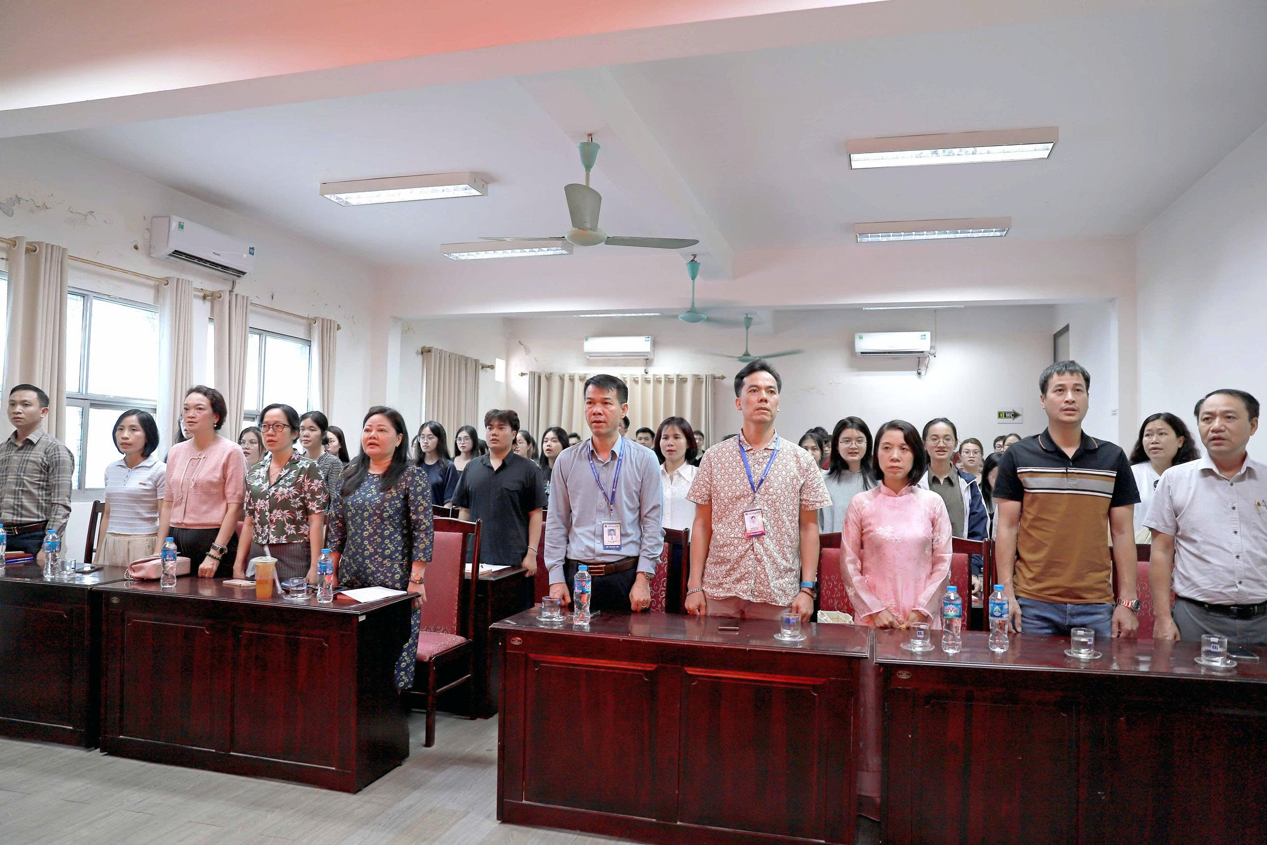 Tới dự Lễ khai giảng có PGS.TS. Lê Vinh Hưng – Phó Bí thư Đảng ủy, Hiệu trưởng; đồng chí Trịnh Thị Thanh – Phó Bí thư Đảng ủy, Phó Hiệu trưởng; Ban Thường vụ Đảng ủy, đại diện Ban Chi ủy các Chi bộ cùng 124 học viên tham dự lớp bồi dưỡng.