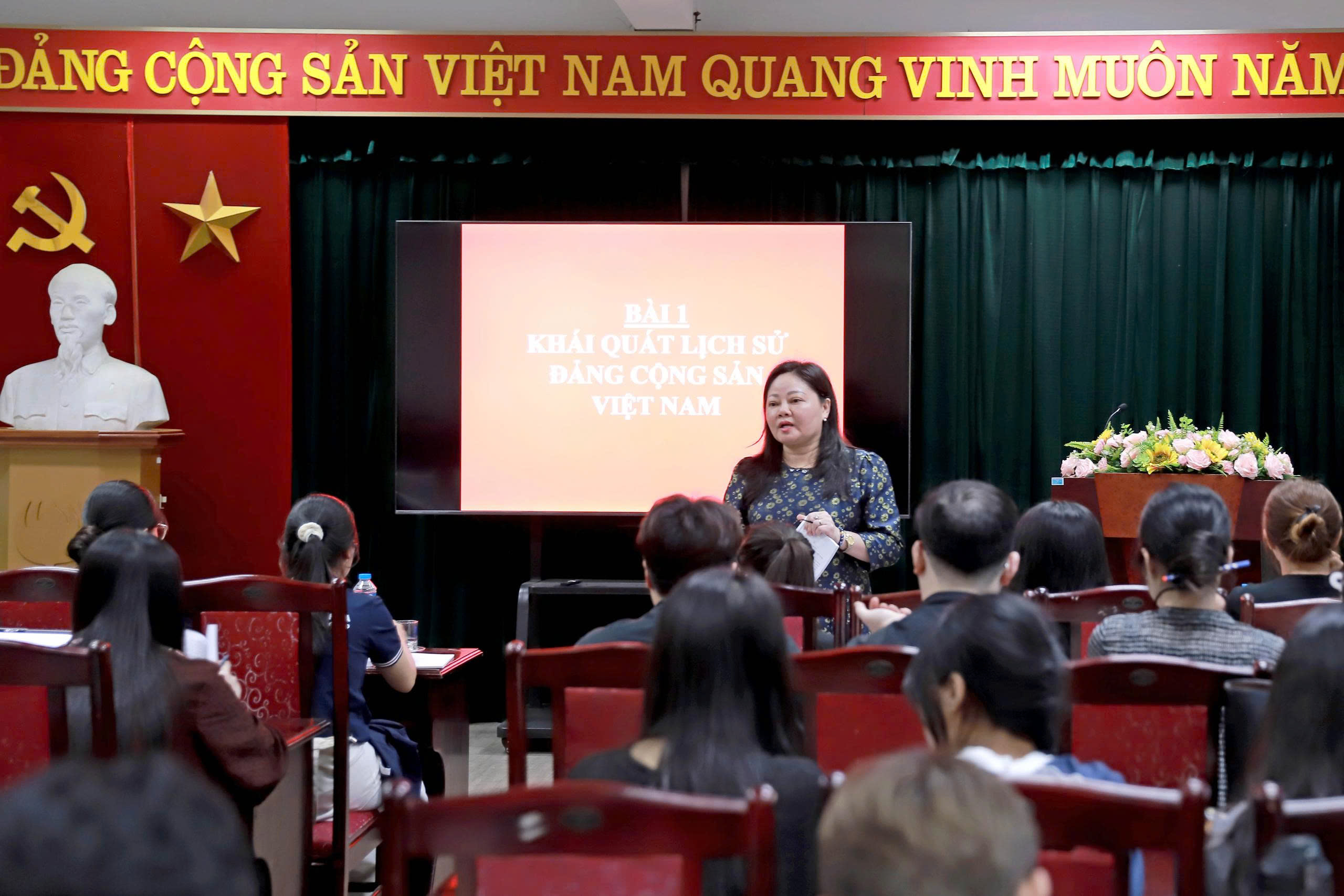 Toàn cảnh buổi học chuyên đề “Khái quát Lịch sử Đảng Cộng sản Việt Nam” do đồng chí Trịnh Thị Thanh – Phó Bí thư Đảng ủy, Phó Hiệu trưởng giảng dạy