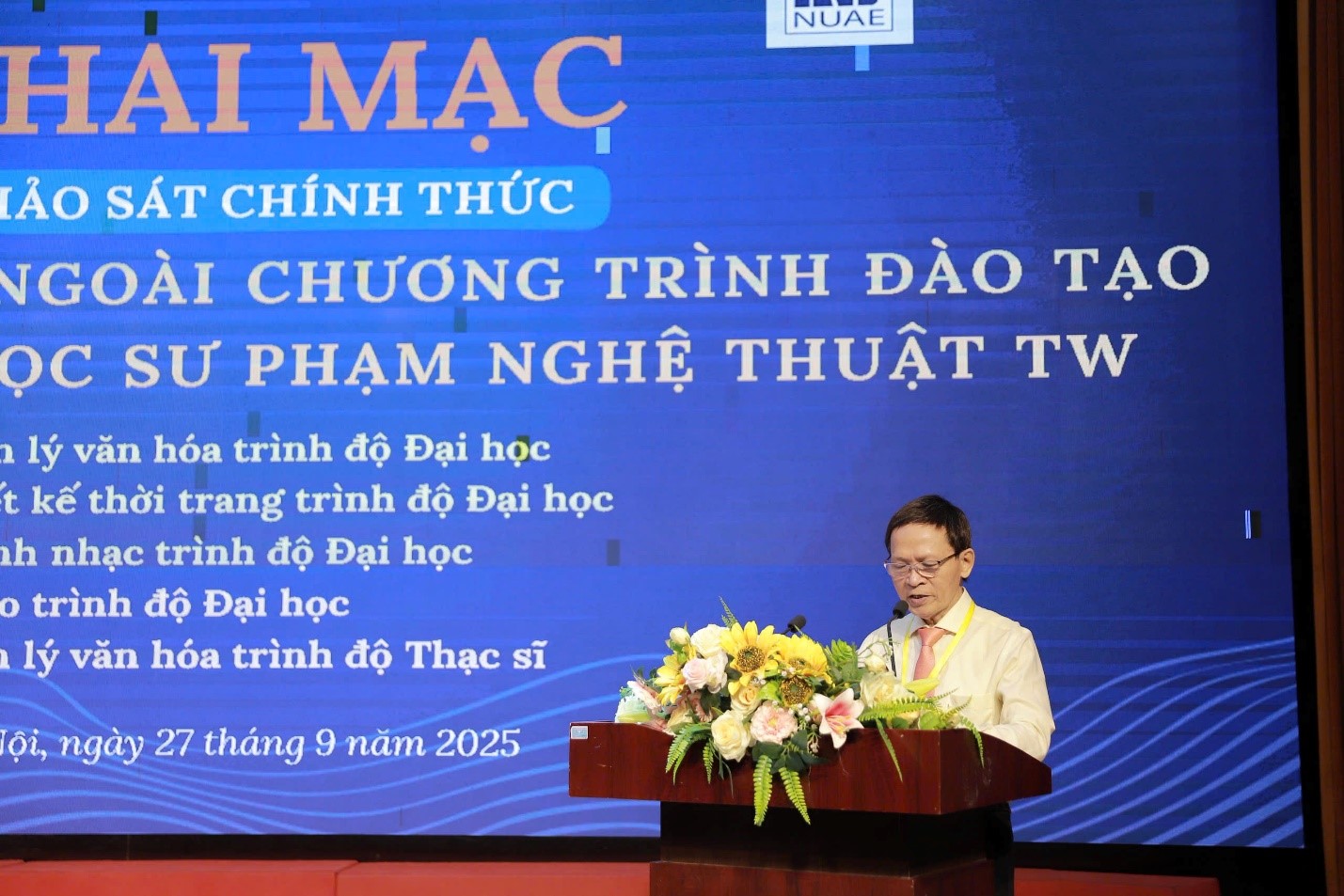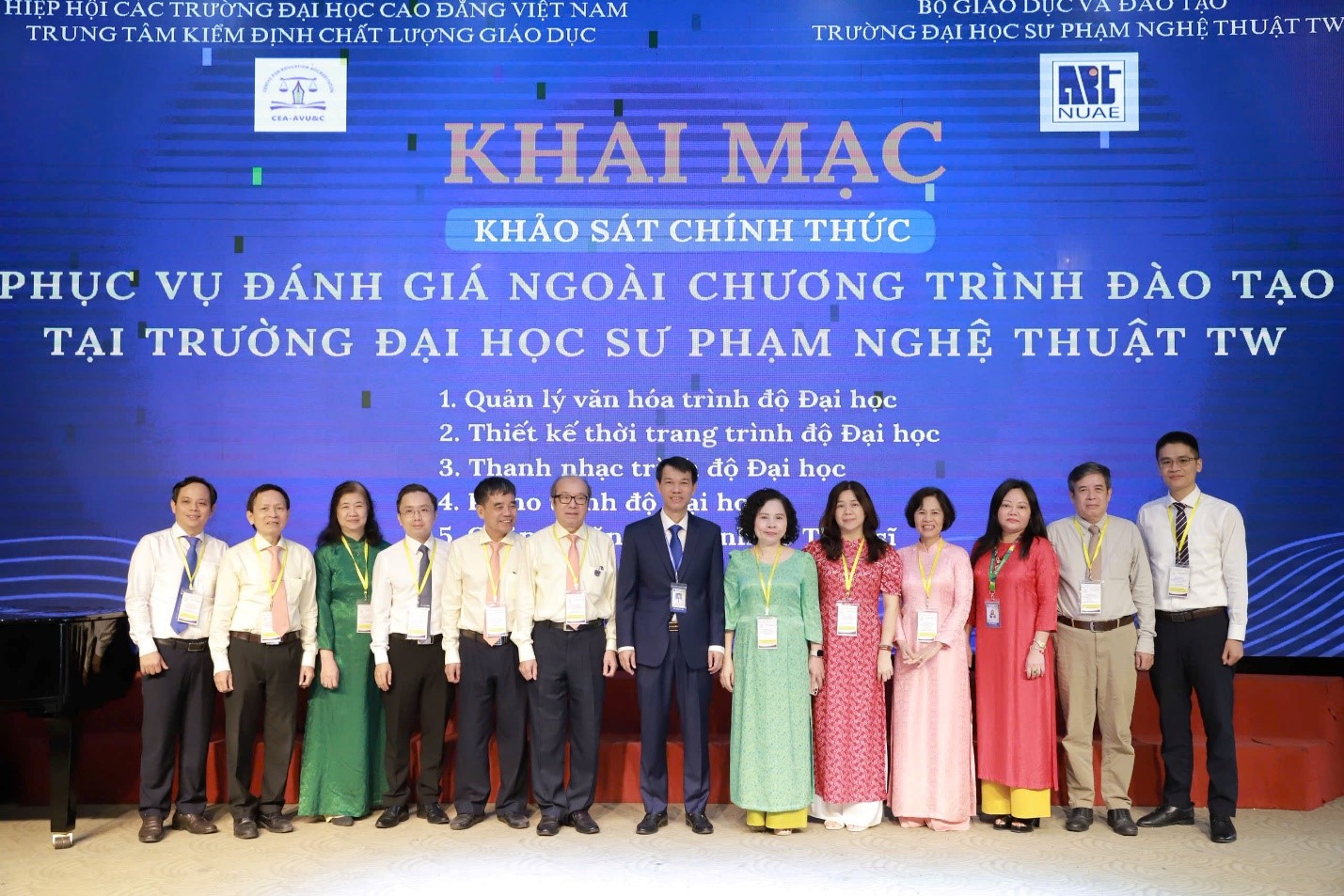 Sau quá trình khảo sát sơ bộ, sáng ngày 27/9/2025, Trường ĐHSP Nghệ thuật TW đã phối hợp với Đoàn đánh giá ngoài (ĐGN) của Trung tâm Kiểm định chất lượng giáo dục (KĐCLGD) thuộc Hiệp hội các trường đại học, cao đẳng Việt Nam khai mạc khảo sát chính thức đánh giá ngoài 04 chương trình đào tạo trình độ đại học, gồm có: Quản lý Văn hóa, Thiết kế Thời trang, Thanh nhạc, Piano; 01 chương trình đào tạo trình độ thạc sỹ: Quản lý văn hóa.