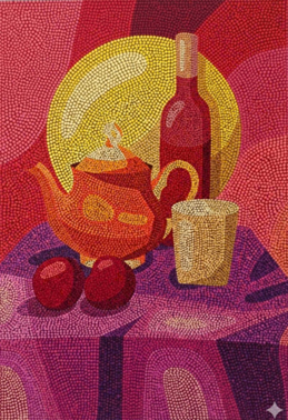 Việc ứng dụng kỹ thuật Điểm họa của Georges Seurat và tư duy từ tác phẩm “Chiều Chủ nhật trên đảo Grande Jatte” vào giảng dạy trang trí tĩnh vật và phong cảnh mang lại một luồng gió mới, giúp học sinh thay đổi hoàn toàn cách tiếp cận về màu sắc. Thay vì tô màu theo mảng miếng phẳng truyền thống, người học được hướng dẫn cách “xây dựng” hình khối thông qua sự tương tác của các điểm màu đặt cạnh nhau. Trong bài vẽ tĩnh vật theo lối vẽ trang trí, phương pháp này giúp học sinh hiểu sâu về sự phản chiếu ánh sáng và bóng đổ; chẳng hạn, một quả táo đỏ không chỉ được vẽ bằng màu đỏ, mà là sự tổng hòa của các chấm vàng, cam và xanh tím để tạo độ mọng. Đối với đề tài phong cảnh, kỹ thuật của Seurat giúp tái hiện bầu không khí và độ rung của ánh sáng một cách tài tình, khuyến khích học sinh quan sát thiên nhiên dưới góc độ phân tích quang học. Nguyên lý pha trộn màu bằng mắt hay còn gọi là hòa sắc quang học là nền tảng cốt lõi của kỹ thuật điểm họa, giúp các bức tranh tân ấn tượng đạt được độ rực rỡ và chiều sâu mà cách pha màu truyền thống trên bảng vẽ khó lòng có được.
