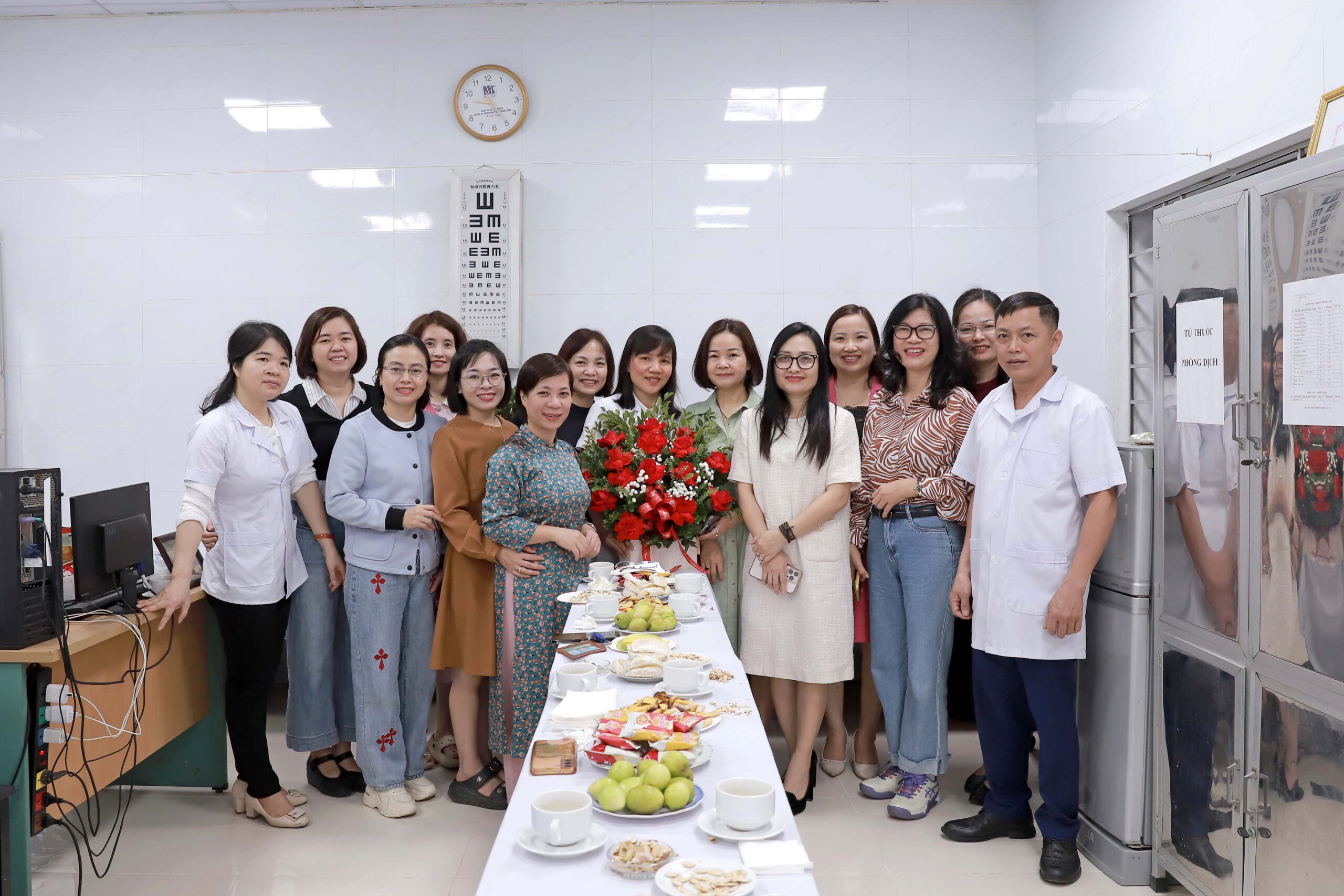 Tham dự buổi gặp mặt và chúc mừng có PGS.TS. Đào Đăng Phượng – Bí thư Đảng ủy, PGS.TS. Lê Vinh Hưng – Phó Bí thư Đảng ủy, Hiệu trưởng, đồng chí Trịnh Thị Thanh – Phó Bí thư Đảng ủy, Phó Hiệu trưởng cùng lãnh đạo, cán bộ các đơn vị trong trường và toàn thể cán bộ, viên chức của Trạm Y tế.