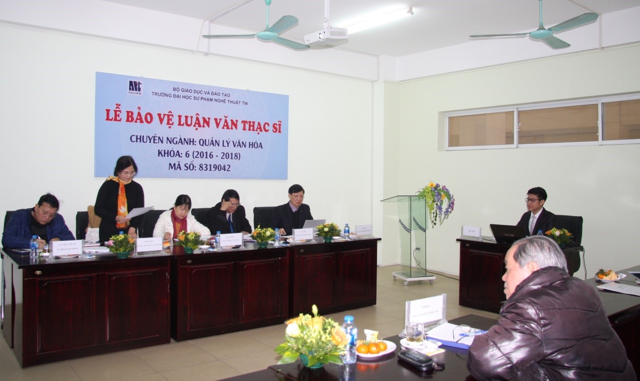 Nhằm đánh giá kết quả học tập của học viên, chiều ngày 05/01/2019 tại Phòng bảo vệ luận văn, khoa Sau đại học, Trường ĐHSP Nghệ thuật TW đã tổ chức Lễ bảo vệ luận văn Thạc sĩ khóa 5 – Chuyên ngành Quản lý văn hóa.