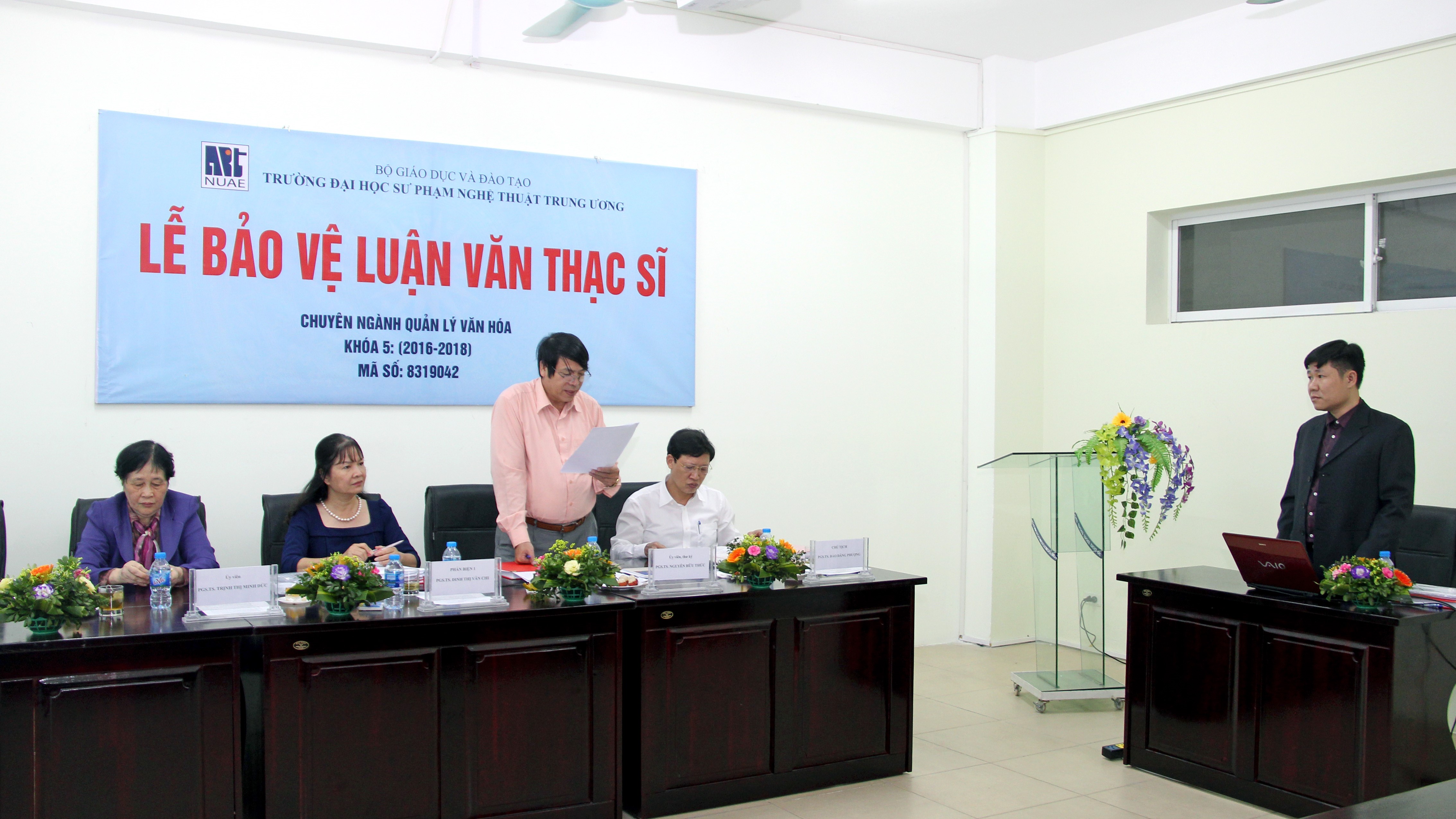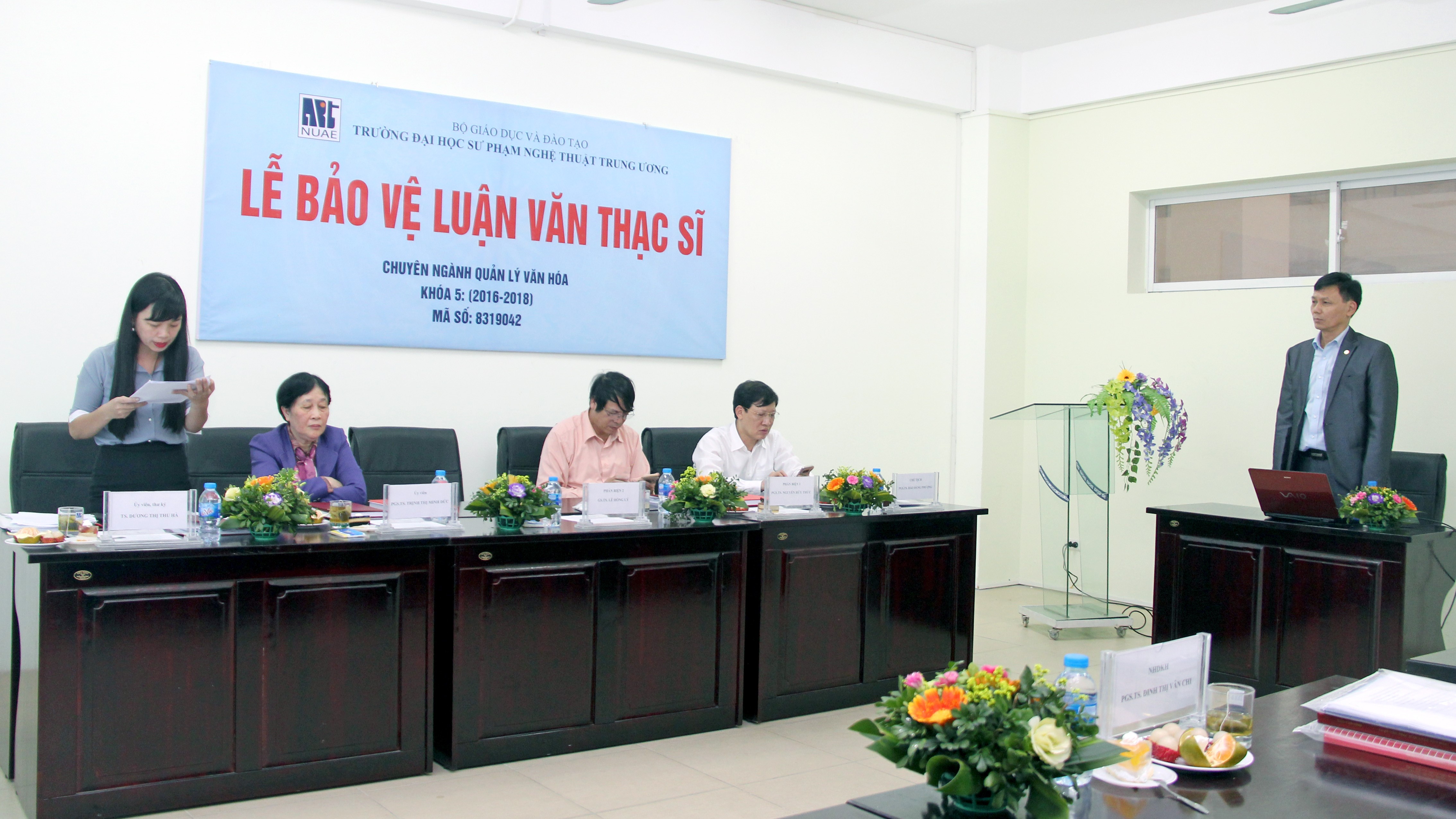 Nhằm đánh giá kết quả học tập của học viên, Chiều 18/10/2018, tại Phòng bảo vệ luận án, Khoa Sau Đại học, Trường ĐHSP Nghệ thuật TW đã tổ chức Lễ bảo vệ luận văn Thạc sĩ, khóa 5 – chuyên ngành Quản lý Văn hóa.