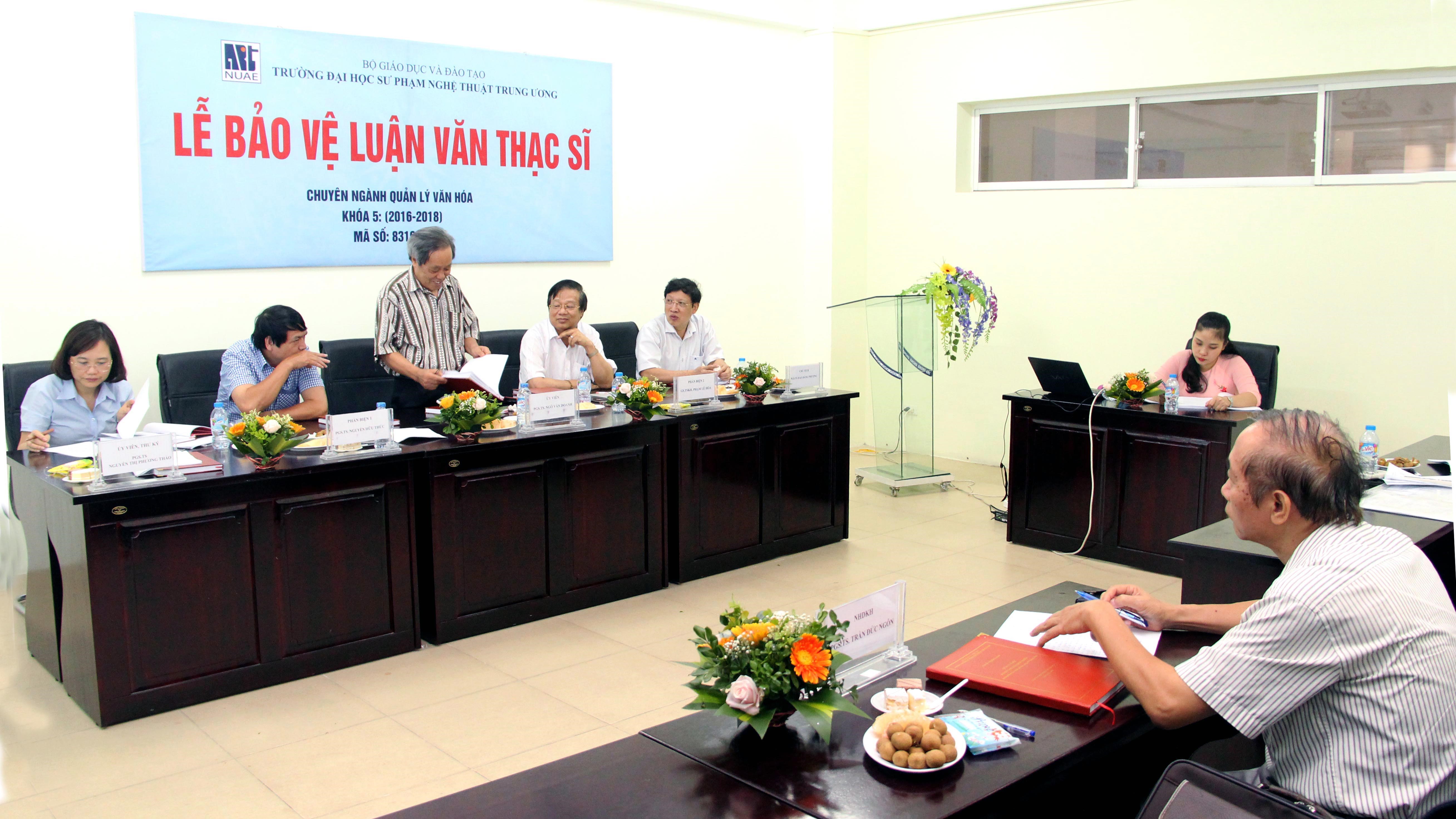 Nhằm đánh giá kết quả học tập của các học viên, chiều ngày 26/7/2018, tại Phòng bảo vệ luận án, Khoa Sau Đại học, Trường ĐHSP Nghệ thuật TW đã tổ chức Lễ bảo vệ luận văn Thạc sĩ, Khóa 5 – chuyên ngành Quản lý Văn hóa.