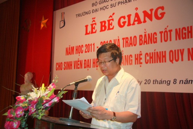 PGS. TSKH Phạm Lê Hòa – Bí thư Đảng ủy, Hiệu trưởng nhà trường – đọc báo cáo tổng kết năm học 2011 – 2012