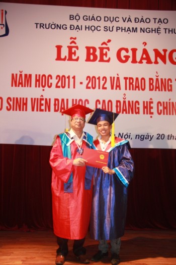 Cũng trong khuôn khổ của buổi lễ, nhà trường đã tiến hành trao bằng tốt nghiệp cho 877 sinh viên đại học, cao đẳng chính quy tốt nghiệp thuộc các ngành học: Sư phạm Mỹ thuật, Sư phạm Âm nhạc, Thiết kế thời trang, Quản lý văn hóa. Đại diện cho các sinh viên tốt nghiệp của khóa 2008 – 2012, sinh viên Vũ Minh Trí – lớp K3B Sư phạm Âm nhạc đã bày tỏ những tình cảm, niềm tự hào, lòng biết ơn đối với thầy cô và mái trường thân yêu. Đồng thời nêu lên quyết tâm sẽ tiếp tục đem những kiến thức đã được trang bị trong trường đại học để góp phần xây dựng đất nước; tiếp nối truyền thống tốt đẹp của nhà trường ĐHSP Nghệ thuật TW.