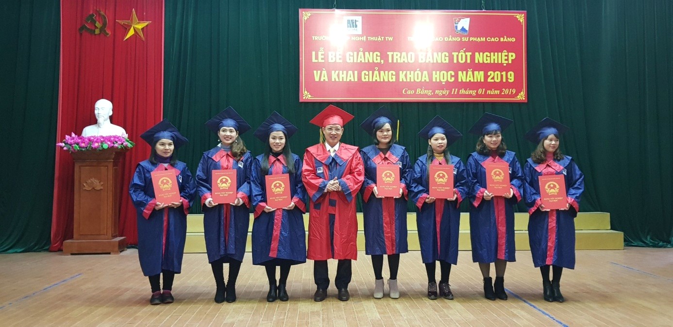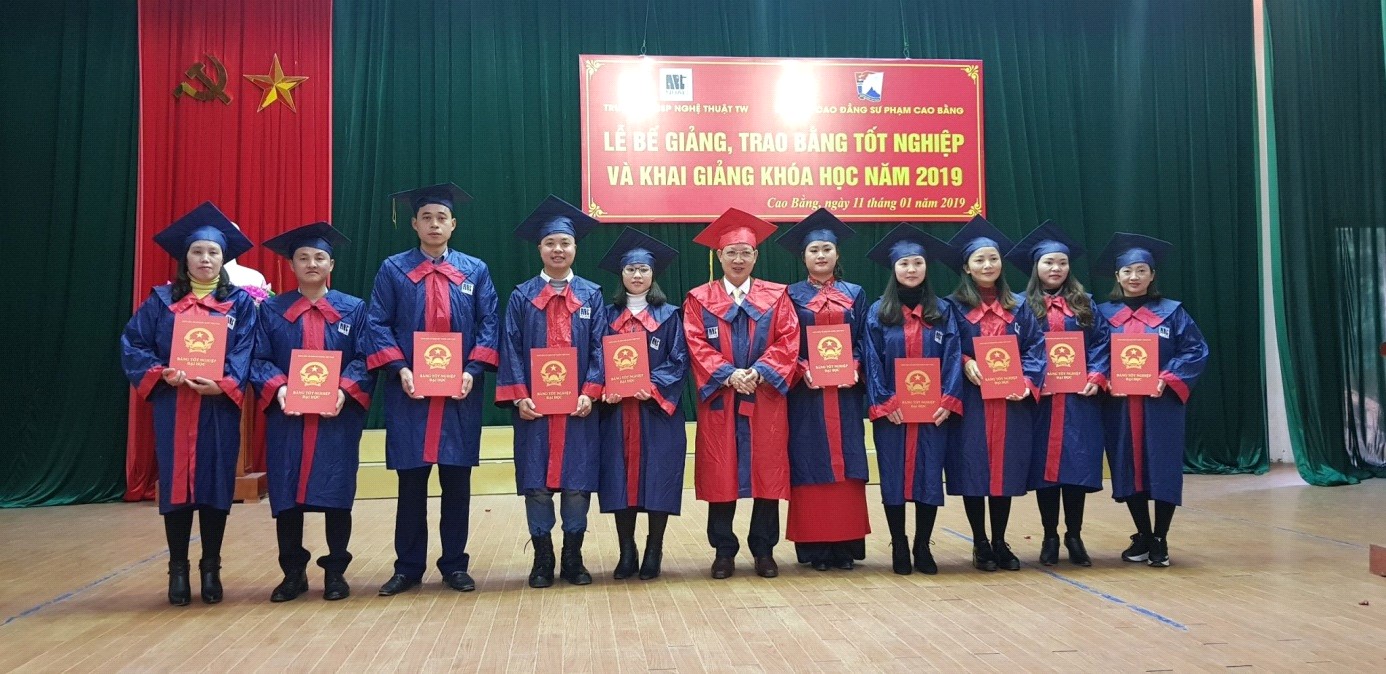Chiều ngày 11/01/2019, tại Trường CĐSP Cao Bằng đã diễn ra Lễ bế giảng, trao bằng tốt nghiệp và khai giảng khóa học năm 2019 của các lớp Đại học Sư phạm Âm nhạc hệ liên thông- Trường ĐHSP Nghệ thuật TW.