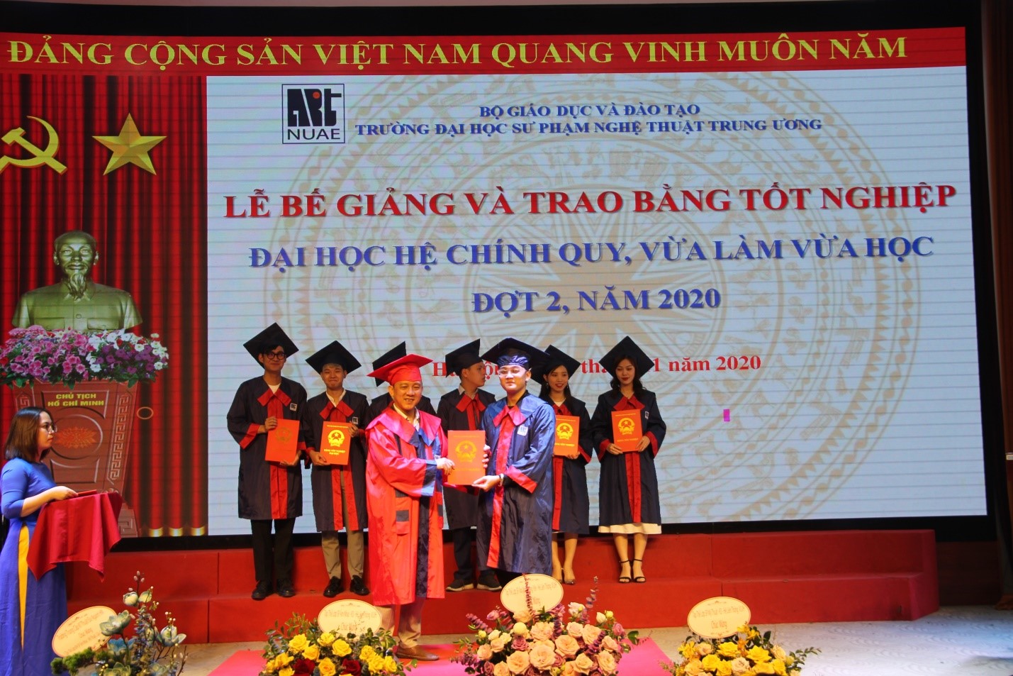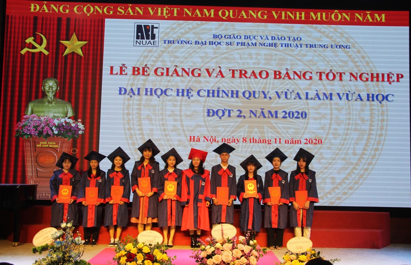 Thực hiện kế hoạch công tác năm học 2019-2020, sáng ngày 08/11, Trường ĐHSP Nghệ thuật TW đã long trọng tổ chức Lễ Bế giảng và trao bằng tốt nghiệp cho sinh viên đại học hệ chính quy, vừa làm vừa học đợt 2, năm 2020.