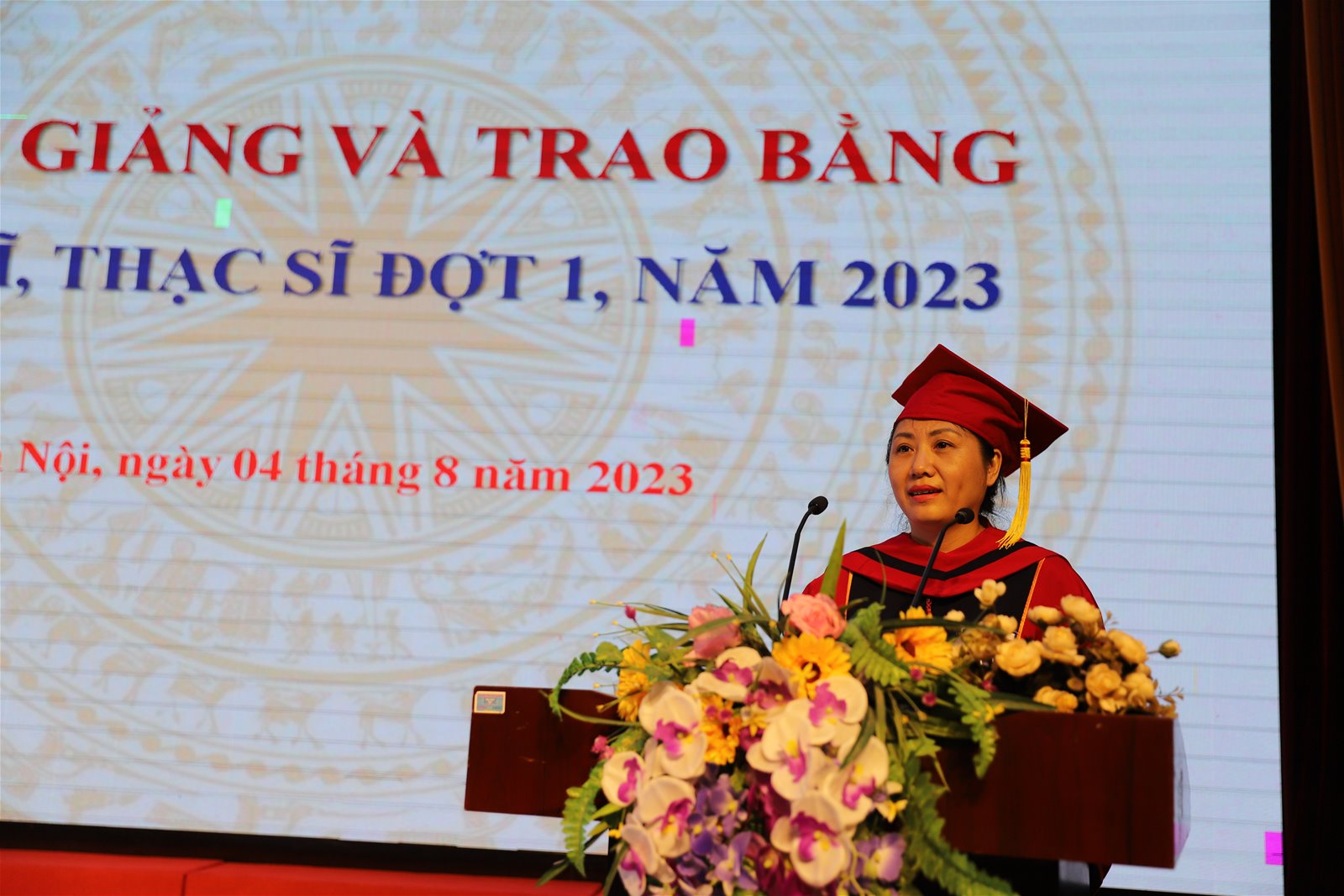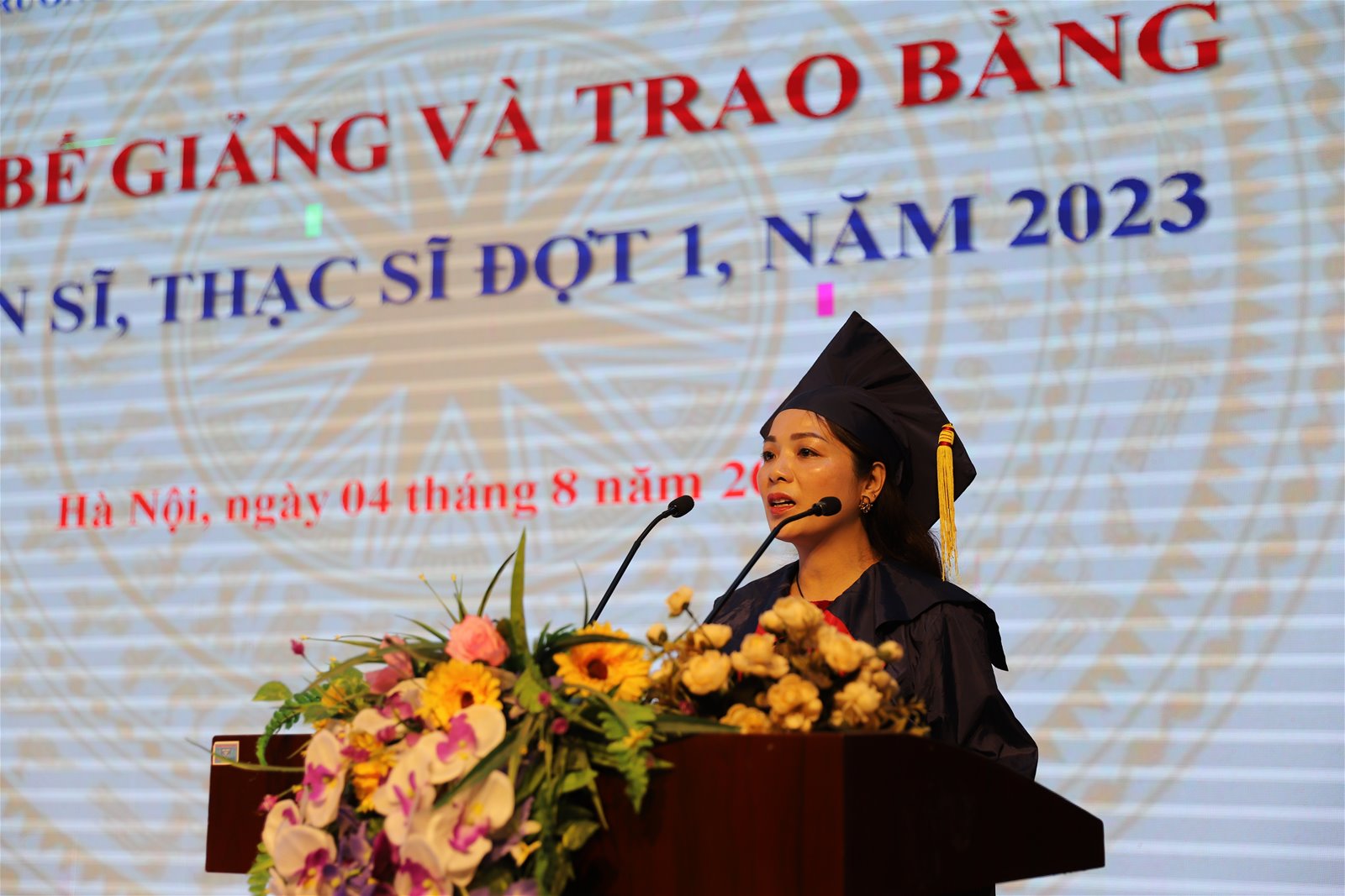 Trong không khí trang trọng của ngày tốt nghiệp, đại diện lãnh đạo Khoa và đại diện nghiên cứu sinh, học viên đã phát biểu bày tỏ tâm tư, tình cảm của mình về những năm tháng học tập, nghiên cứu tại Trường. Đó là những lời cảm ơn chân thành tới Nhà trường, thầy cô, bạn bè và gia đình đã luôn động viên giúp đỡ họ trên chặng đường chinh phục tri thức; đó cũng là lời hứa sẽ mang những tri thức, kỹ năng đã được đào tạo áp dụng vào thực tiễn công tác trong tương lai.