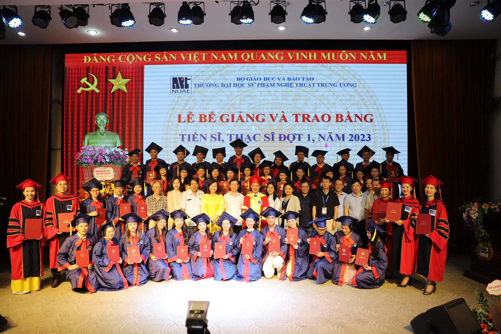 Lễ bế giảng và trao bằng tốt nghiệp năm 2023 của Trường ĐHSP Nghệ thuật TW đã diễn ra tốt đẹp. Đây là một sự kiện có ý nghĩa vô cùng quan trọng đối với mỗi học viên đánh dấu một bước ngoặt trên chặng đường học tập, nghiên cứu. Tin tưởng rằng, trong mỗi tân Tiến sĩ, tân Thạc sĩ của hôm nay dù đi đến đâu, ở môi trường công tác nào cũng sẽ luôn giữ niềm tự hào về mái trường ĐHSP Nghệ thuật TW – nơi đã chắp cánh cho những ước mơ nghệ thuật của họ được bay cao, bay xa.