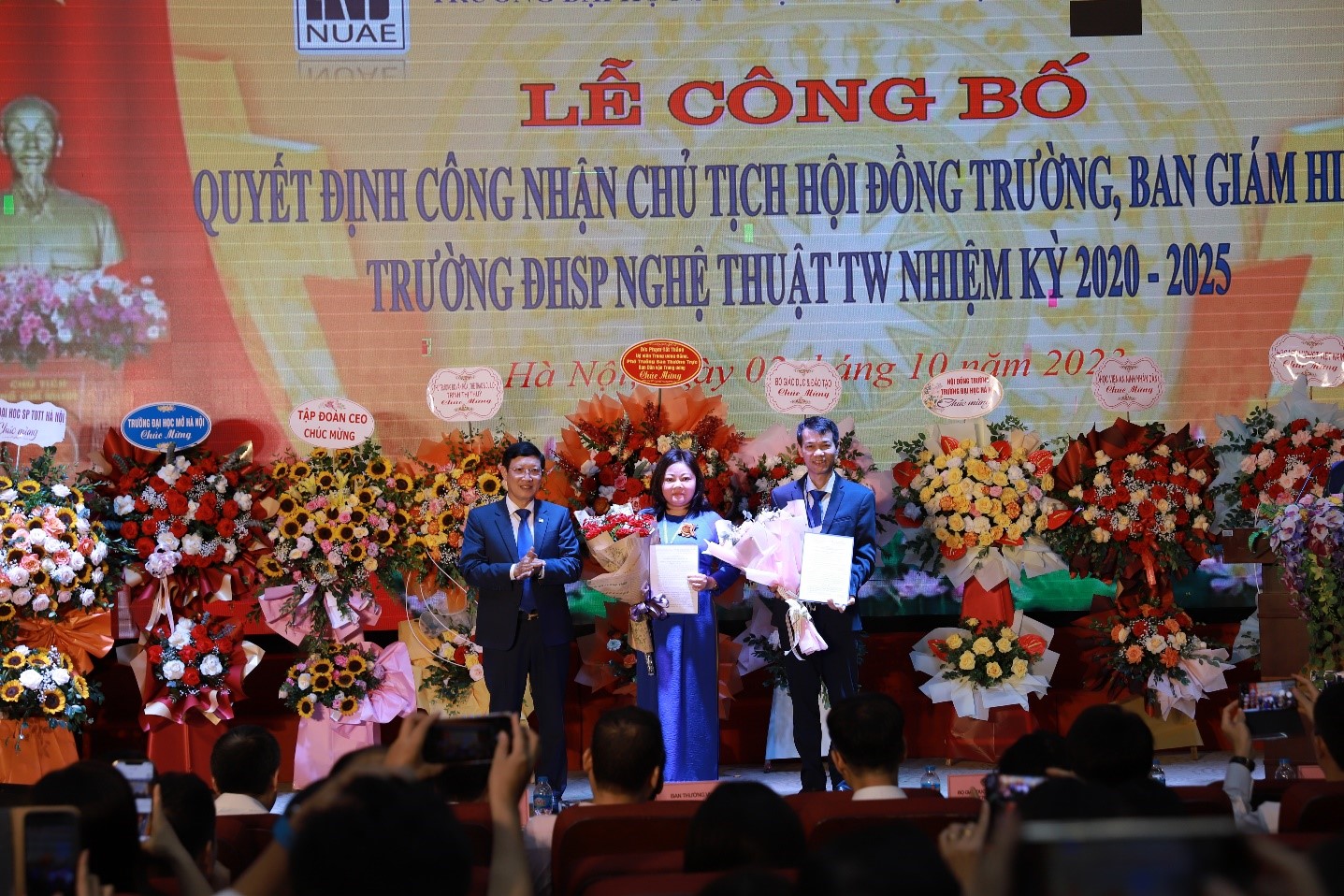 Cũng tại buổi lễ, Chủ tịch Hội đồng Trường Đào Đăng Phượng đã trao Quyết định giao nhiệm vụ Phó hiệu trưởng phụ trách đối với PGS.TS. Lê Vinh Hưng cho đến khi có quyết định của Bộ Giáo dục và Đào tạo về việc công nhận Hiệu trưởng Trường ĐHSP Nghệ thuật TW, quyết định công nhận chức danh Phó Hiệu trưởng cho ThS. Trịnh Thị Thanh – Phó Bí thư Đảng ủy.