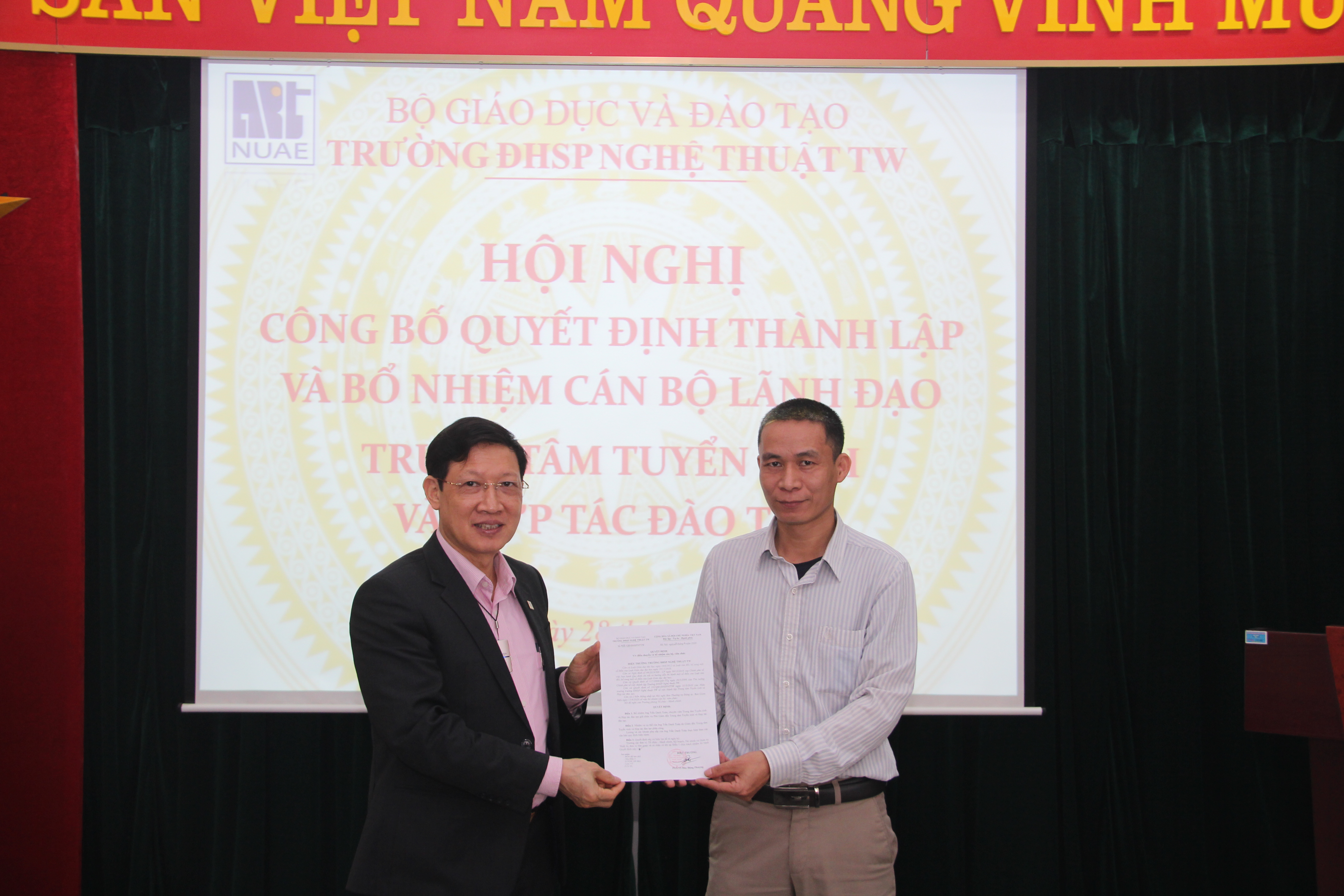 Sáng ngày 28/4/2020, Trường ĐHSP Nghệ thuật TW đã long trọng tổ chức Lễ công bố Quyết định thành lập và bổ nhiệm cán bộ lãnh đạo Trung tâm Tuyển sinh và Hợp tác đào tạo.