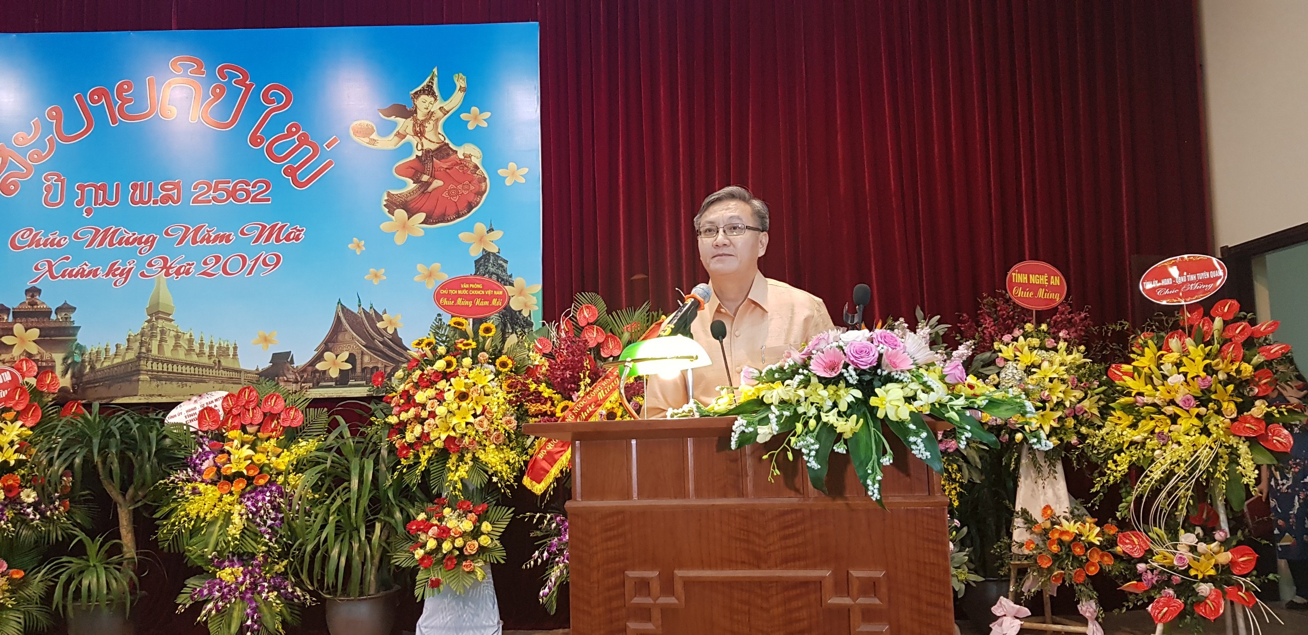Tối 11/4/2019, tại Nhà khách Hồ Tây, Hà Nội, Đại sứ quán nước Cộng hòa Dân chủ Nhân dân (CHDCND) Lào tại Việt Nam đã tổ chức Lễ đón Tết cổ truyền Bun Pi May năm 2019 (năm 2562 theo Phật Lịch) của nhân dân các dân tộc Lào.
