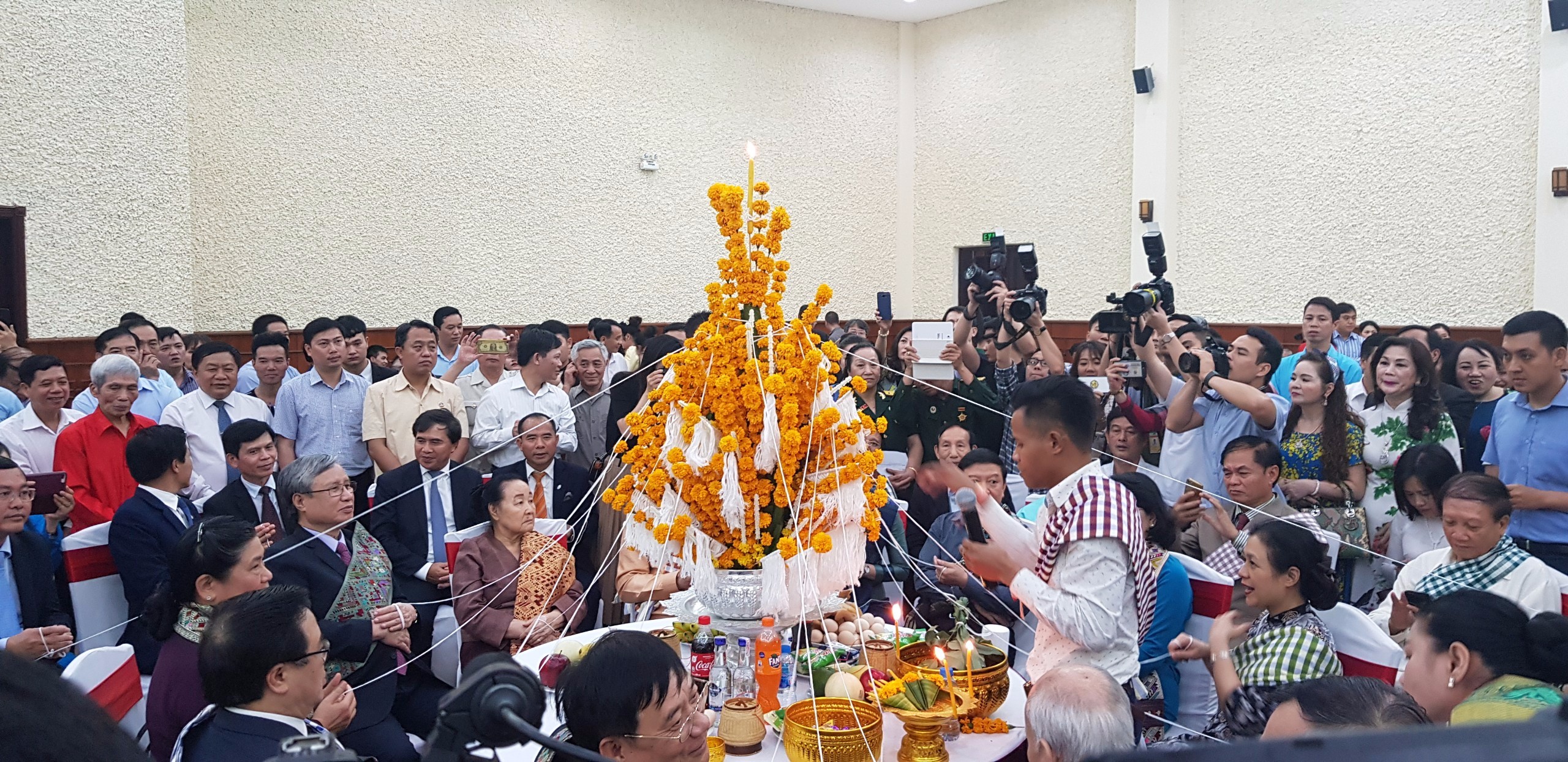 Tại buổi Lễ, lãnh đạo Đảng, Nhà nước Việt Nam, Đại sứ quán Lào và quan khách đã tham dự nghi lễ buộc chỉ- một trong sự kiện nhiều ý nghĩa của Tết cổ truyền Bun Pi May và thưởng thức một số tiết mục nghệ thuật do các lưu học sinh Lào đang học tập tại Việt Nam biểu diễn.
