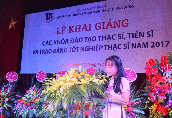 Mở đầu Lễ Khai giảng là một chương trình nghệ thuật do các học viên cao học và nghiên cứu sinh của Nhà trường biểu diễn. Các tiết mục được vang lên trong niềm hân hoan của 160 học viên trúng tuyển cao học và nghiên cứu sinh năm 2017, gồm 154 học viên cao học các chuyên ngành Lí luận và Phương pháp dạy học Âm nhạc, Lí luận và Phương pháp dạy học Bộ môn Mĩ thuật, Quản lí Văn hóa và 06 NCS chuyên ngành Lí luận và Phương pháp dạy học Âm nhạc.