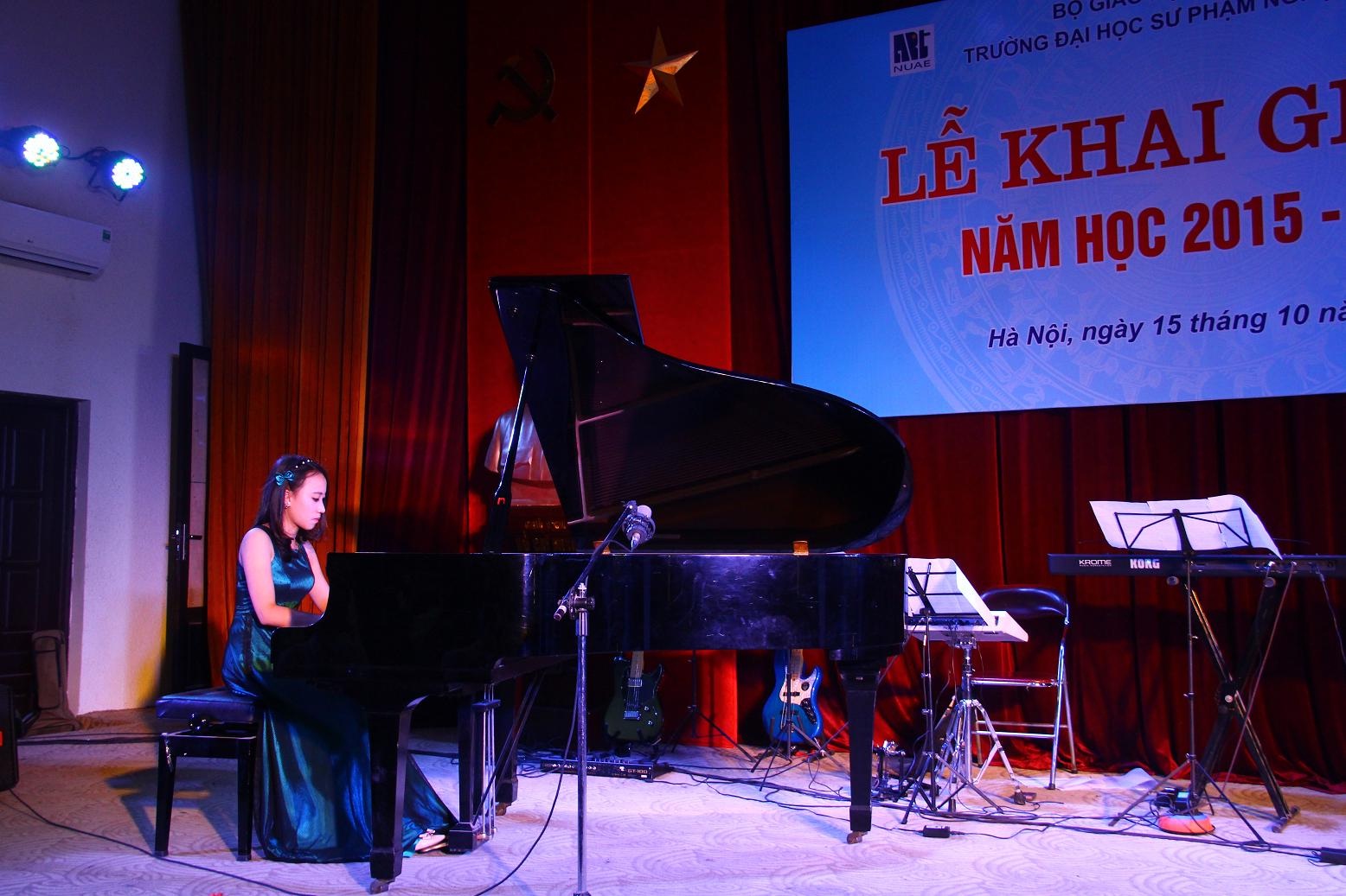 Sinh viên Nguyễn Thanh Hương lớp K9D – Sư phạm Âm nhạc trong phần trình bày nhạc phẩm “Nocturne op 90no1 – Chopin