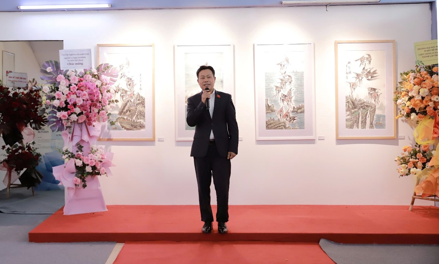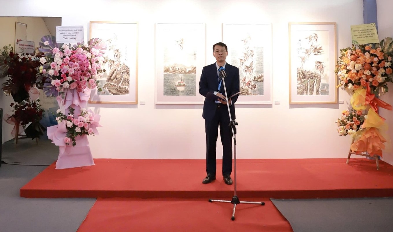 Phát biểu khai mạc Triển lãm, PGS.TS. Lê Vinh Hưng – Phó Bí thư Đảng ủy, Hiệu trưởng nhấn mạnh: Trong công cuộc công nghiệp hóa – hiện đại hóa đất nước và hội nhập quốc tế, hoạt động nghệ thuật nói chung và Triển lãm Mỹ thuật nói riêng đã có những bước tiến, góp phần xây dựng nền văn hóa Việt Nam tiên tiến đậm đà bản sắc dân tộc. Công nghiệp văn hóa ra đời đáp ứng yêu cầu thực tiễn và xu thế thời đại trong quá trình hội nhập và phát triển, đưa văn hóa trở thành ngành công nghiệp, khai thác kinh tế tiềm năng, góp phần phát triển kinh tế – xã hội, quảng bá hình ảnh đất nước, con người Việt Nam.