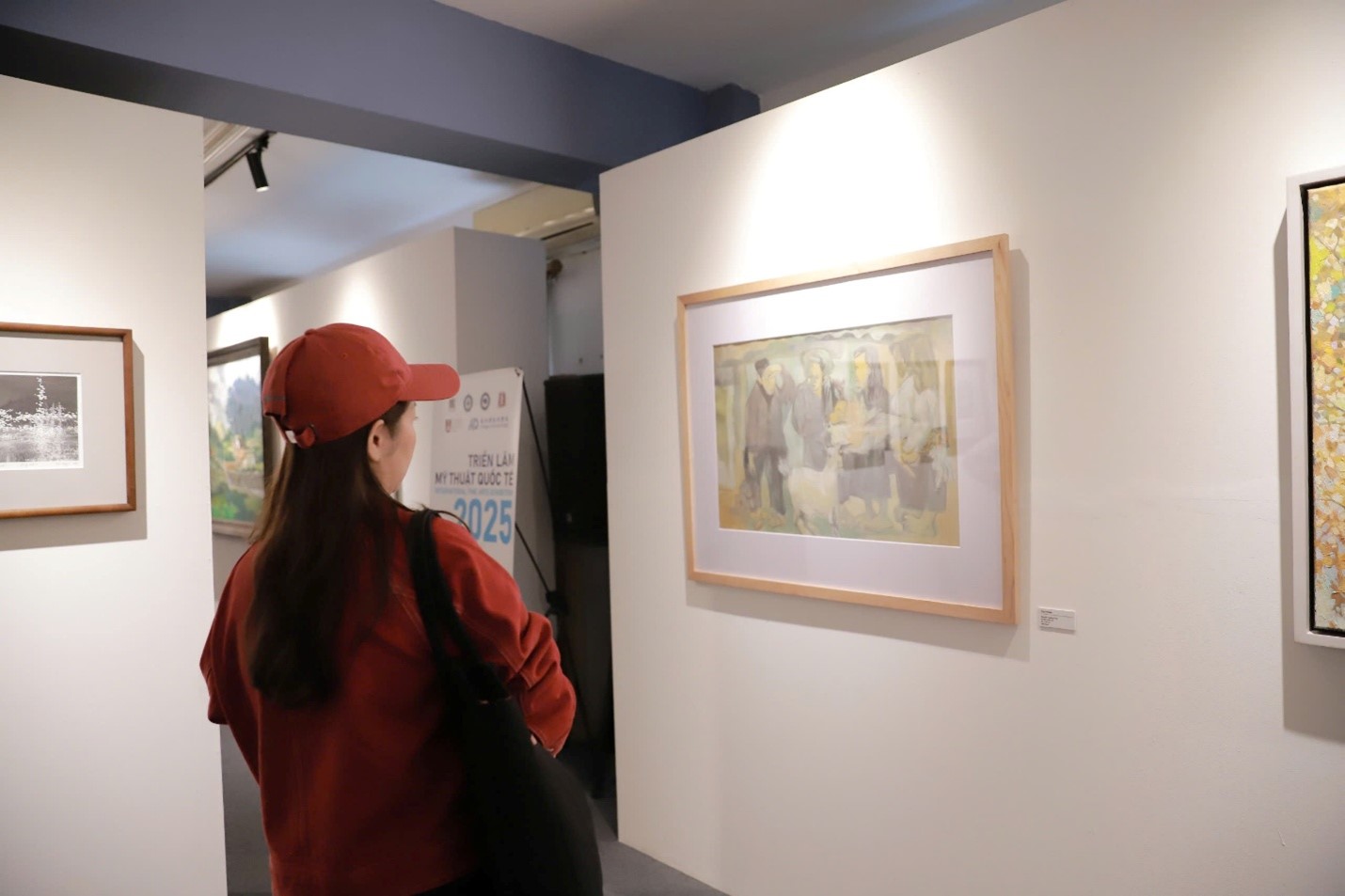 Không gian triển lãm thu hút đông đảo người yêu nghệ thuật đến tham quan và thưởng thức các tác phẩm