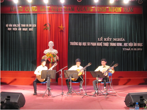 Một số hình ảnh về chương trình văn nghệ chào mừng Lễ ký kết thỏa thuận hợp tác giữa Trường ĐHSP Nghệ thuật TW và Học viện Âm nhạc Huế: