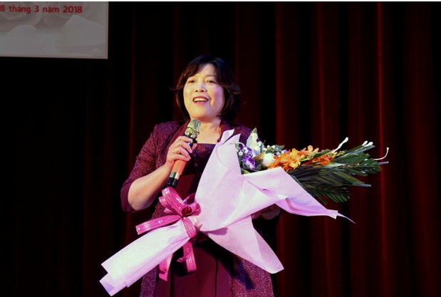 ThS. Trần Mai Tuyết – Trưởng khoa Thanh nhạc phát biểu chúc mừng Ngày Quốc tế Phụ nữ