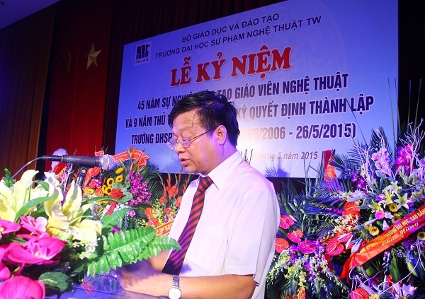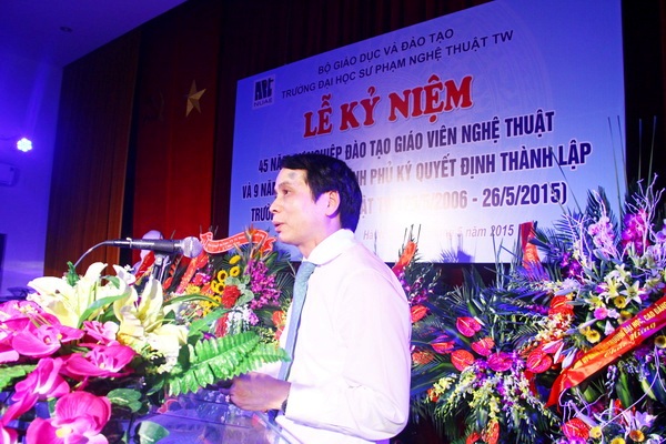 PGS.TS, NGƯT Phạm Mạnh Hùng, Thứ trưởng Bộ Giáo dục và Đào tạo thay mặt Lãnh đạo Bộ GD & ĐT ghi nhận và biểu dương những đóng góp to lớn của các thế hệ thầy và trò Trường ĐHSP Nghệ thuật TW trong 45 năm qua đối với sự nghiệp phát triển giáo dục nghệ thuật của đất nước. Thứ trưởng bày tỏ niềm tin tưởng với những cố gắng, nỗ lực không ngừng, thầy trò Nhà trường sẽ hoàn thành tốt nhiệm vụ chiến lược phát triển của Nhà trường trong giai đoạn tiếp theo; luôn giữ vững vai trò là trường đầu ngành về đào tạo nguồn nhân lực chất lượng cao trong lĩnh vực Sư phạm Nghệ thuật, tiếp tục cống hiến nhiều hơn nữa vào thành công chung của nền giáo dục nước nhà.