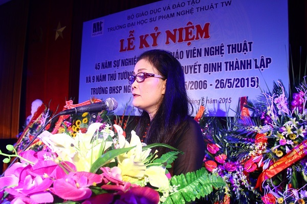 Đại diện cho cán bộ giảng viên Nhà trường, PGS.TS, NGƯT Nguyễn Thị Tố Mai đã chia sẻ những tâm tư, tình cảm, lòng biết ơn đối với các thế hệ nhà giáo đã có nhiều công lao đối với sự phát triển lớn mạnh của Trường ĐHSP Nghệ thuật TW ngày hôm nay. Với cương vị là một nhà giáo trong môi trường Sư phạm Nghệ thuật, PGS luôn cảm thấy tự hào và vinh dự khi được góp phần tâm sức, trí tuệ đối với sự nghiệp cao quý – sự nghiệp giáo dục nghệ thuật của nước nhà.