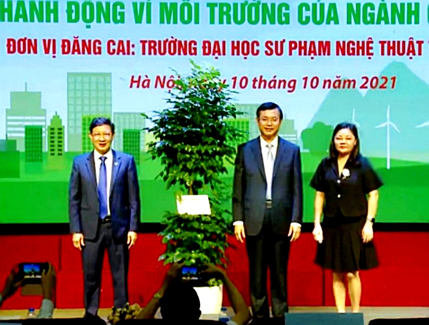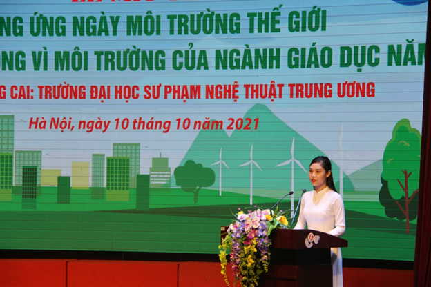 NUAE – Sáng ngày 10/10, tại Trường ĐHSP Nghệ thuật TW, Bộ Giáo dục và Đào tạo (GD&ĐT) tổ chức Lễ Mít tinh hưởng ứng ngày Môi trường thế giới và Tháng hành động vì môi trường của ngành Giáo dục năm 2021. Đây là sự kiện được Bộ GD&ĐT tổ chức hàng năm nhằm tuyên truyền, giáo dục, từng bước nâng cao nhận thức và ý thức trách nhiệm của học sinh, sinh viên, các thầy cô giáo và toàn thể cộng đồng về bảo vệ môi trường sống để phát triển bền vững.