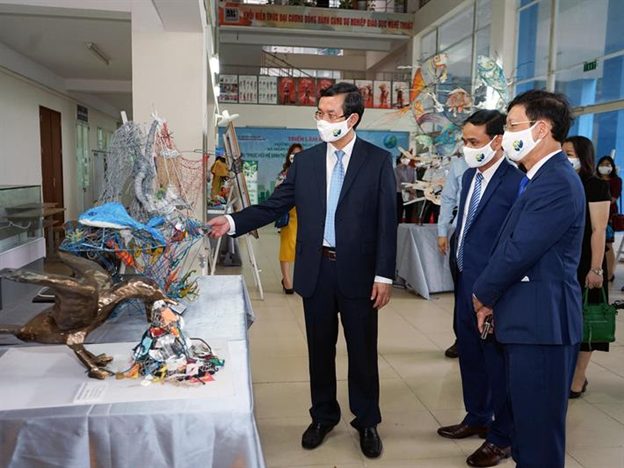 Thứ trưởng Bộ GD&ĐT Nguyễn Văn Phúc tham quan triển lãm các tác phẩm nghệ thuật