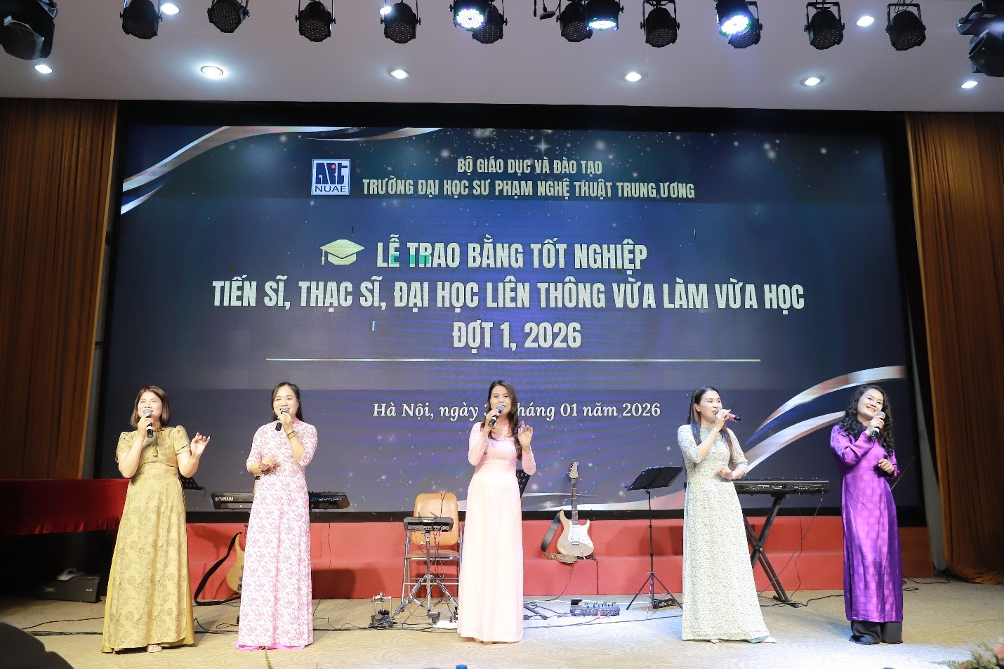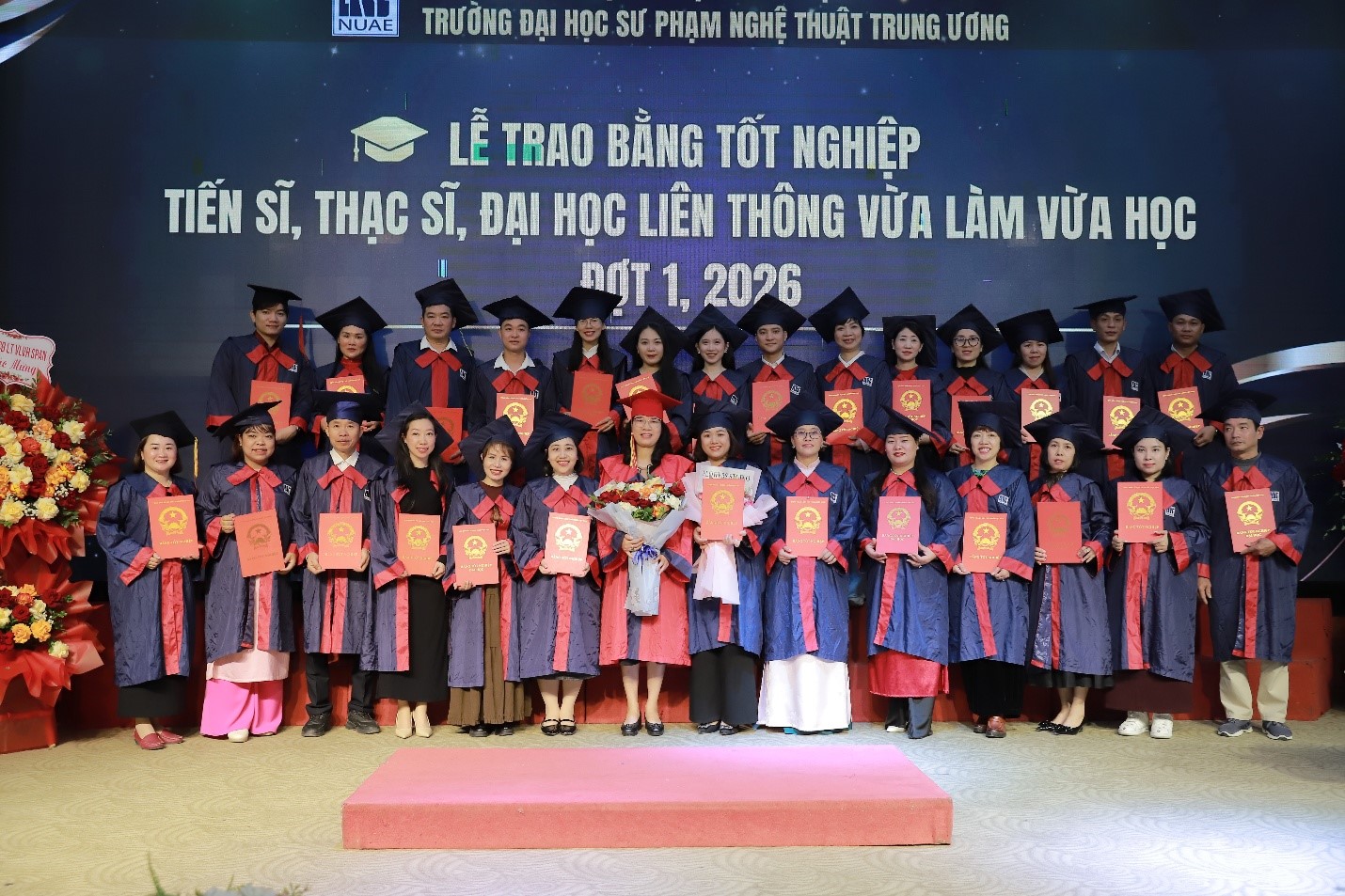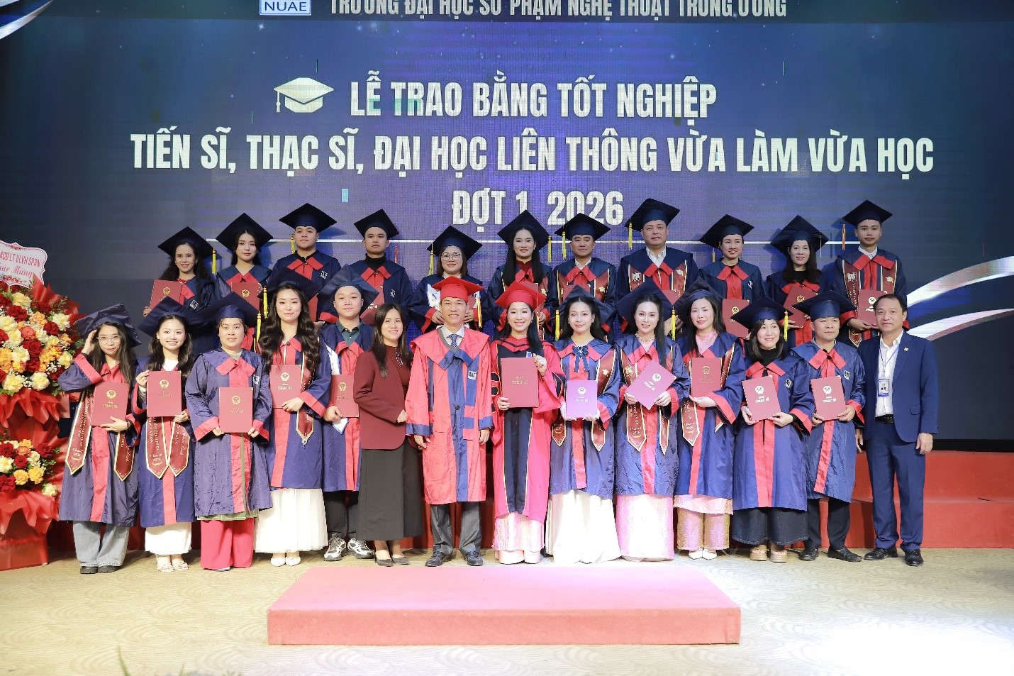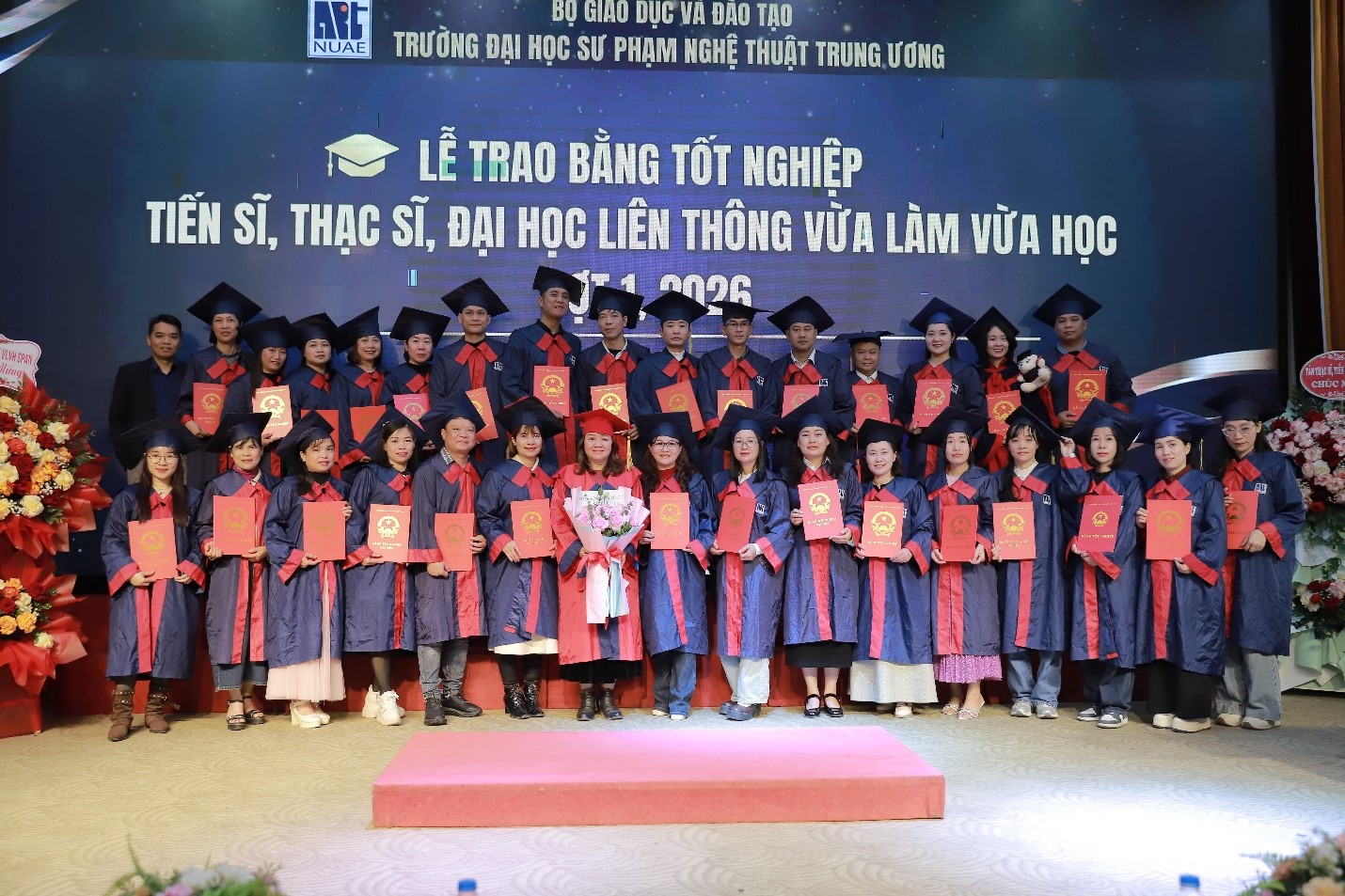 Dưới đây là một số hình ảnh về Lễ trao bằng tốt nghiệp tiến sĩ, thạc sĩ, đại học liên thông VLVH đợt 1 năm 2026 của Trường ĐHSP Nghệ thuật TW: