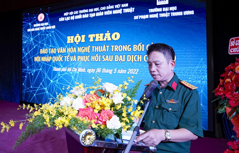 Cũng tại hội thảo này Đại tá Nghệ sĩ nhân dân Trần Xuân Thanh – Phó Hiệu trưởng Trường Đại học Văn hóa Nghệ thuật Quân đội chia sẻ: “ Trong thời gian vừa qua, dù trong điều kiện khó khăn, tình hình dịch bệnh Covid-19 vẫn còn tiềm ẩn nguy cơ bùng phát nhưng các Trung tâm VHNT, Trường Đại học, Cao đẳng , các trung tâm đào tạo các chuyên ngành nghệ thuật đã nỗ lực tổ chức nhiều mô hình hoạt động như: nhà hát online, nhà hát truyền hình, các chương trình livestream trực tiếp, các diễn đàn truyền thông, mạng xã hội… nhằm truyền thông, quảng bá, duy trì hoạt động VHNT rất hiệu quả. Đã dần hình thành thêm một thói quen mới về thưởng thức, hưởng thụ VHNT trong công chúng. Điều này đã đem lại những cơ hội lớn về khả năng giảm thiểu chi phí sản xuất, góp phần tạo ra các kênh phân phối, quảng bá sản phẩm VHNT, đồng thời, tạo nên những phản xạ nhạy bén với xã hội của công tác đào tạo, sản xuất và quảng bá VHNT. Có thể kể ra đây một số cơ sở đào tạo VHNT đã thực hiện rất hiệu quả về hình thức này như: Học viện Múa Việt Nam, trường ĐH Sư phạm Nhạc Họa trung ương, trường ĐH VHNT Quân đội… đã xây dựng được mô hình sinh thái, không gian VHNT nguyên hợp ngay tại cơ sở đào tạo, khiến cho môi trường đào tạo sinh động hơn, hấp dẫn hơn, kích thích tinh thần giảng dạy, học tập, sáng tạo góp phần nâng cao chất lượng đào tạo nguồn nhân lực văn hóa nghệ thuật trong tình hình mới.