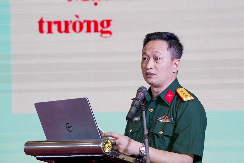Trinh bày tham luận của Thượng tá, Tiến sĩ, NSND Nguyễn Xuân Bắc, Trường Đại học VHNT Quân đội.