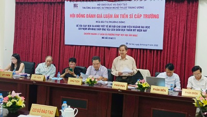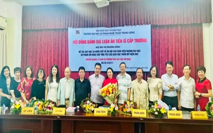 Hội đồng chấm luận án Tiến sĩ cấp Trường gồm 7 thành viên: Chủ tịch Hội đồng: PGS.TS. Lê Anh Tuấn (Học viện Âm nhạc Quốc gia Việt Nam); Phản biện 1: PGS.TS. Lê Văn Toàn (Học viện Âm nhạc Quốc gia Việt Nam); Phản biện 2: PGS.TS. Phó Đức Hòa (Trường ĐH Sư phạm Hà Nội); Phản biện 3: PGS.TS. Phạm Trọng Toàn (Trường ĐHSP Nghệ thuật TW), các Ủy viên Hội đồng: PGS.TS. Đặng Thành Hưng (Trường ĐHSP Hà Nội 2), PGS.TS. Nguyễn Đăng Nghị (Trường ĐHSP Nghệ thuật TW); Ủy viên, Thư ký: PGS.TS. Nguyễn Thị Tố Mai (Trường ĐHSP Nghệ thuật TW)